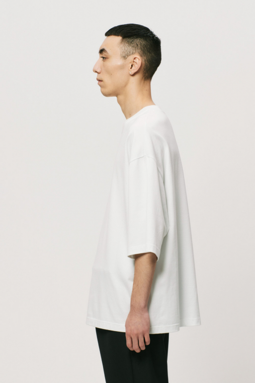 超長綿のオーガニックコットンを使用したクルーネックTシャツ。シンプルなデザインで贅沢を体験することでベーシックの本質を認識してほしいというメッセージが込められた、しっかりとした厚みがありながらもソフトな触感と自然なツヤ感による品のある仕上がりが特徴的です。
