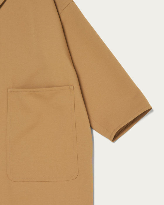 フロントのピンタックやスカートのギャザーが上品な印象のパフスリーブワンピース。アンダースカート付なので透け感が気になりにくいのもポイント。袖にはあえてボリュームをもたせ腕が華奢に見える様に、膝辺りで切り替えをしてギャザーの分量感を引き立てるデザインです。ナイロンとコットンで織り上げられたプレーンな素材を使用。仕上げにタンブラー加工を施すことでよりソフトでナチュラルな表情感を出しています。モード感と女性らしさをあわせ持ったワンピースはショートブーツやヌーディーなサンダルで抜け感を出すスタイルも楽しめます。