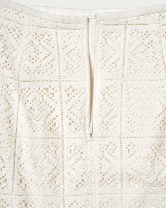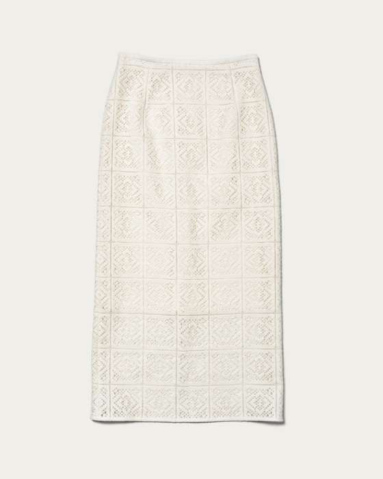 〈BEAUTY&YOUTH〉オリジナルでイチからお作りしたレーススカート。形はシンプルに、タイトロング型にいたしました。ホワイトとベージュ2色展開です。同素材でシャツもご用意しております。