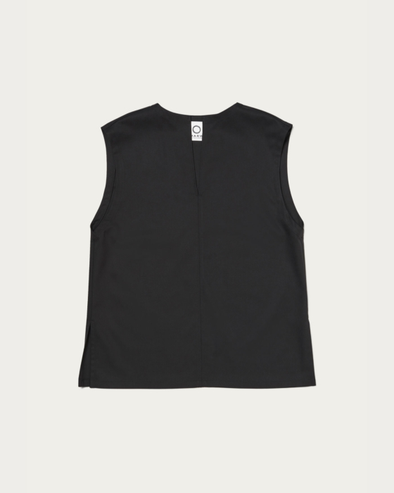 程よく厚みのあるポリエステル/レーヨン素材を使用したノースリーブブラウス。シンプルでありながら一枚着として様になり、また、インナーをあわせたレイヤードスタイルもできるので、お好みのボトムスとあわせ様々なスタイリングを楽しめる着回し力抜群の一着です。※サンプルで撮影しているため実際の商品と一部仕様が異なります。