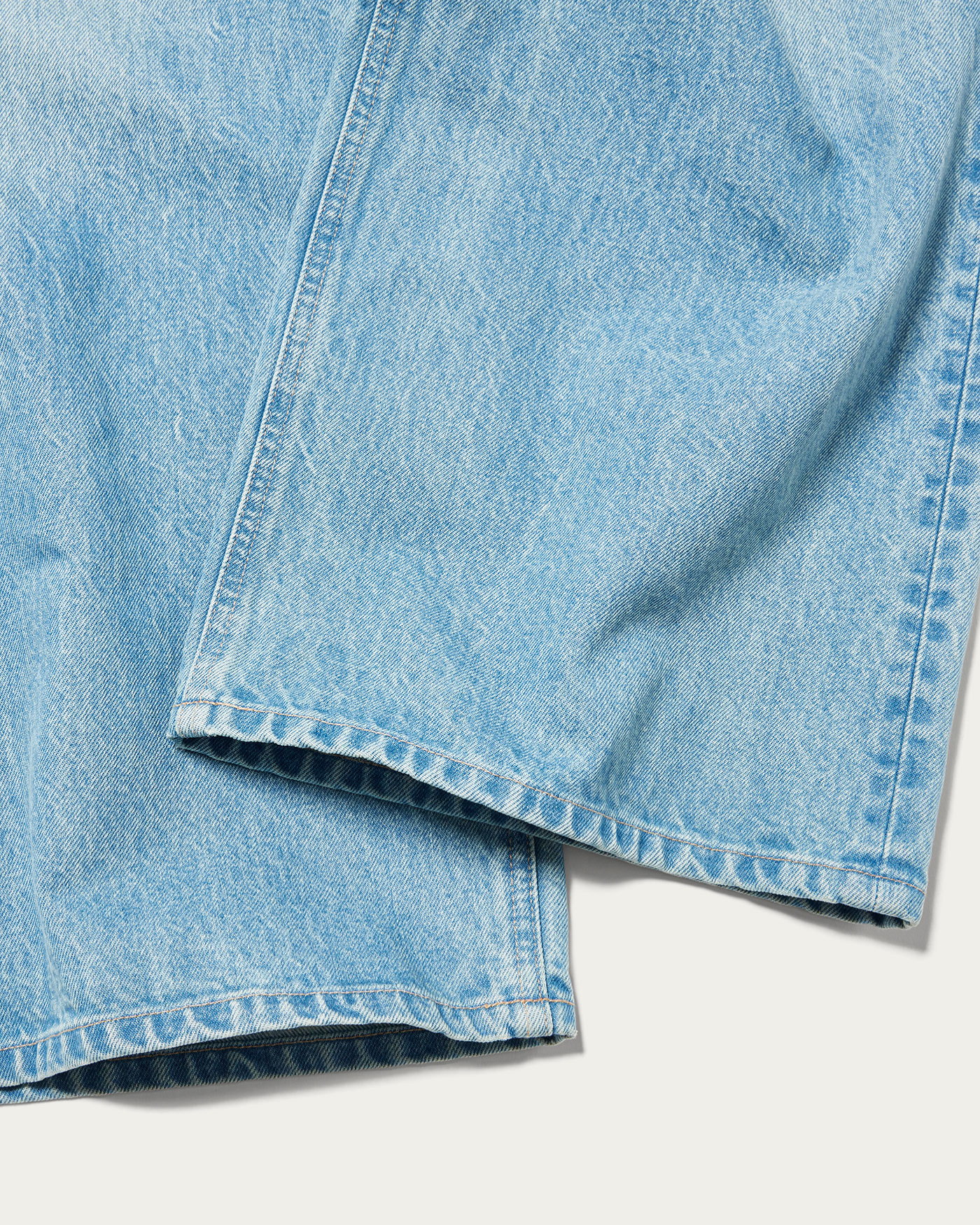 肉厚なデニムを使用したバギーパンツです。古着のディテールから踏襲したフロントポケットデザインが特徴。合わせるアイテムを選ばない清潔感のある加工に仕上げています。