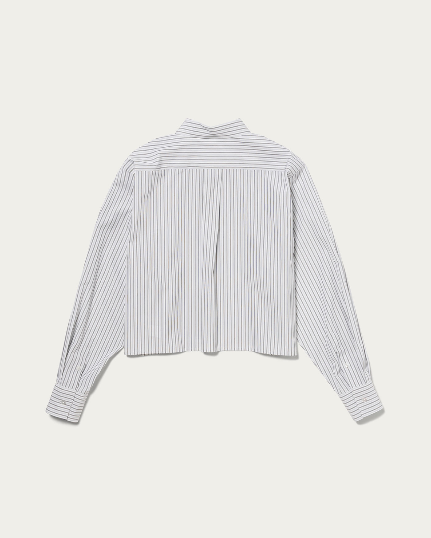 THOMAS MASON社のコットンブロードを使用したクロップドシャツ。ハリのある美しいブロードでお作りしたシャツはロングポイントカラーの襟元がポイントです。シャープな印象の洗練されたレギュラーシャツはコーディネートのスパイスに。