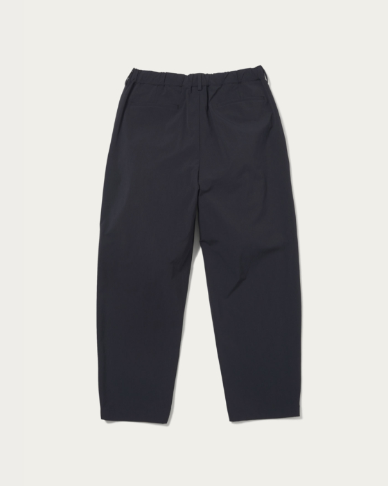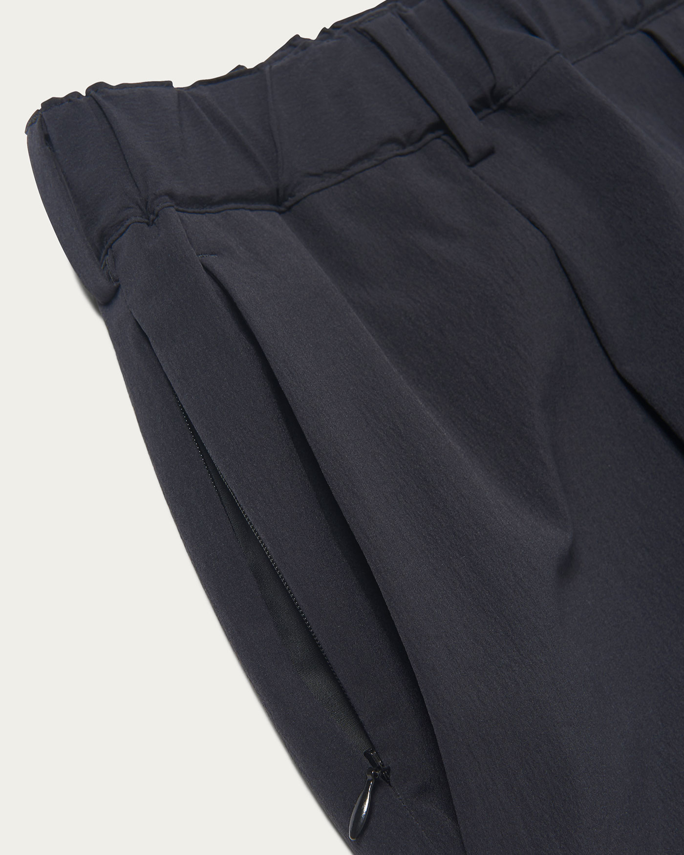 「360°MASTER」シリーズのバルーンシルエットパンツ。 裾に向かって緩やかにテーパードをかけた、大人らしい印象とゆとりのあるバランスを併せ持ったシルエットです。右脇にはコンシールファスナー付きのセキュリティポケットを付与。また、ウエストの内側にスピンドルを内蔵しベルトレスでの着用も可能です。