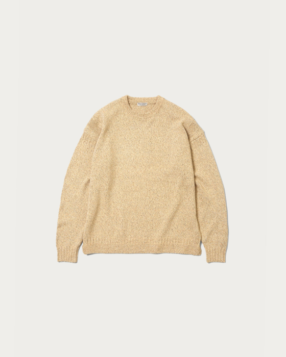 コットン、ポリエステル、アクリルをブレンドした滑らかな素材感や、ガンジーセーターから着想を得たニット編みパターンなどこだわりの詰まった一着を春らしいミックスカラーで展開。ドロップショルダーで適度にルーズなシルエットは裾に向かってテーパードさせているため、裾周りが比較的すっきりしているのも特徴です。
