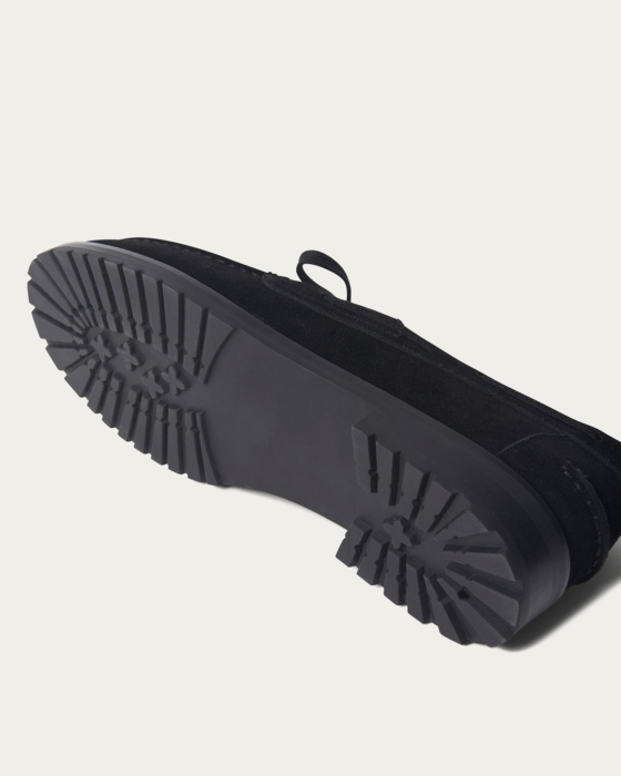 “上品に履けるデッキシューズ”をテーマに作製。ワントーンの色構成と金具パーツがないシックな雰囲気がポイントです。細身の木型にクッション感とボリュームがあるラグソールが旬な一足になっています。