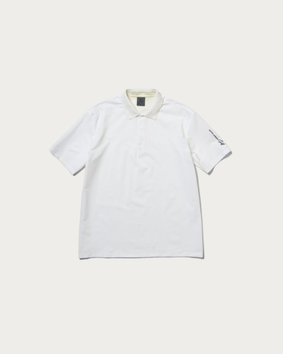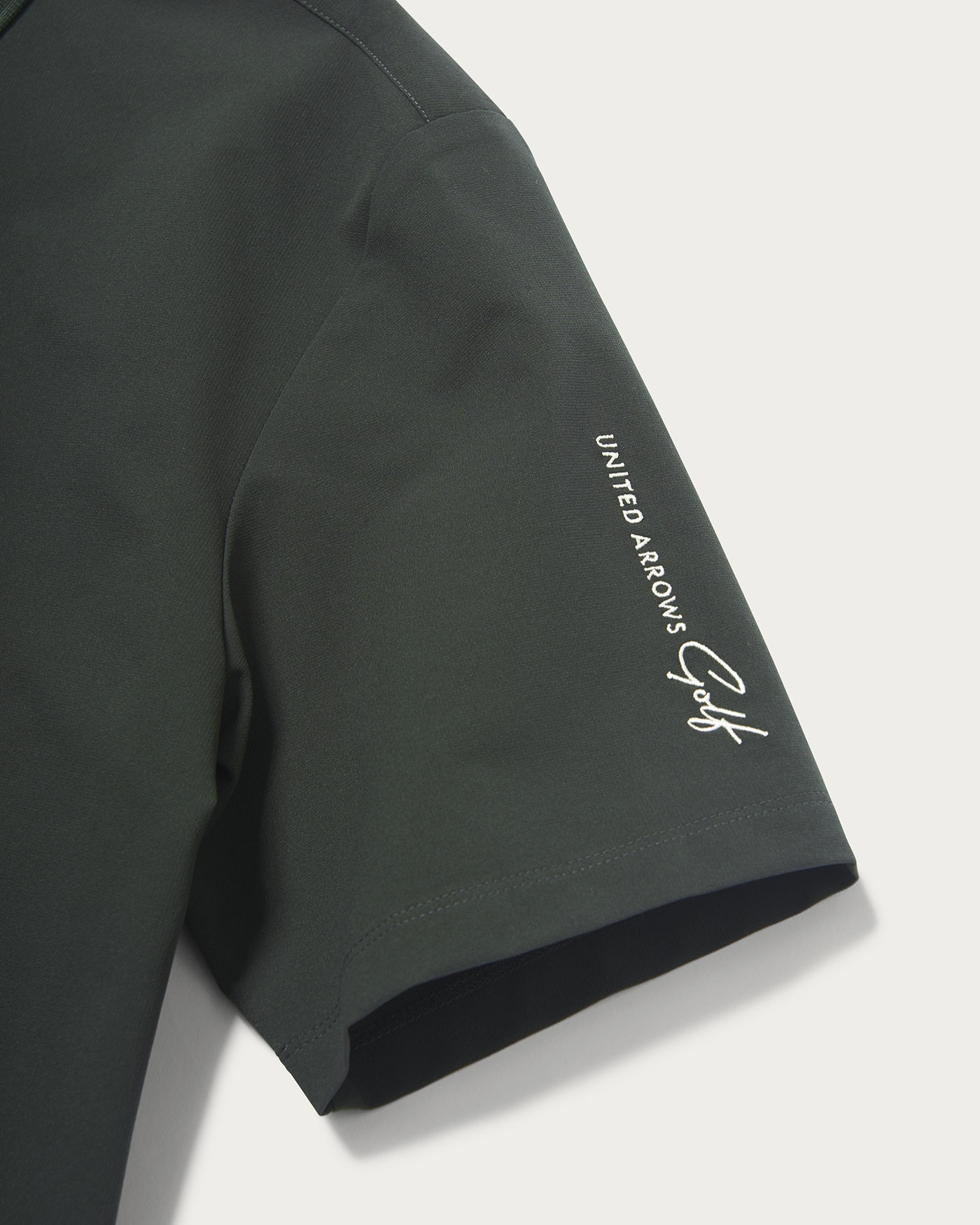 ドライタッチな生地感で比翼仕立てのスポーティーなデザインのポロシャツ。左腕部分に縦に入れたブランドロゴと、背中の襟元にワンポイントでロゴプレートを付けたシンプルなデザインが特徴です。