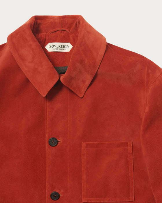 イタリアのラグジュアリーアウターブランド<EMMETI(エンメティ)>に別注したカバーオール。今回は大人のかたのカジュアル着として、スエード素材のカバーオールを型から依頼しました。今シーズンの<ソブリン>のテーマである南アフリカにある南国の島「モーリシャス」をイメージさせ、赤土や太陽のような色めで表現したカラーです。素材は毎シーズンご好評いただいている、国産のピッグスキンのスエードに撥水加工を施したものを採用。スエードの天敵である急な雨による雨染みや、汚れも付きにくく、上品さがありながらとても使いやすい仕様となっています。首元にスカーフを巻いたり、トラウザーズできれいめに合わせていただくのもおすすめです。