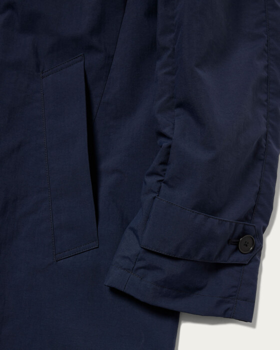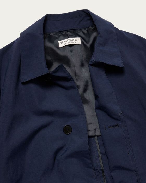撥水機能を持つパーテックス生地を使用したバルカラーコート。シーズン性のあるカラー展開と繊細なシワ感が特徴で、コンパクトなAラインシルエットも見逃せません。内ポケットを4つ配置し、機能性を向上させ、春先の肌寒い時期の良き相棒となってくれそうなライトアウターです。
