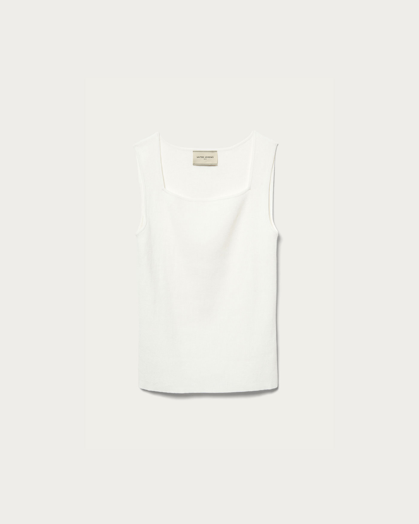 スクエアネックでデコルテを綺麗に見せてくれるニットキャミソール。同素材のポロ型カーディガンとセットでの着用もおすすめ。さらっとした清涼感のあるタッチで春夏シーズンのインナー使いに活躍すること間違いなし。リブ編地のため伸度に優れ、着心地の良さもポイントです。