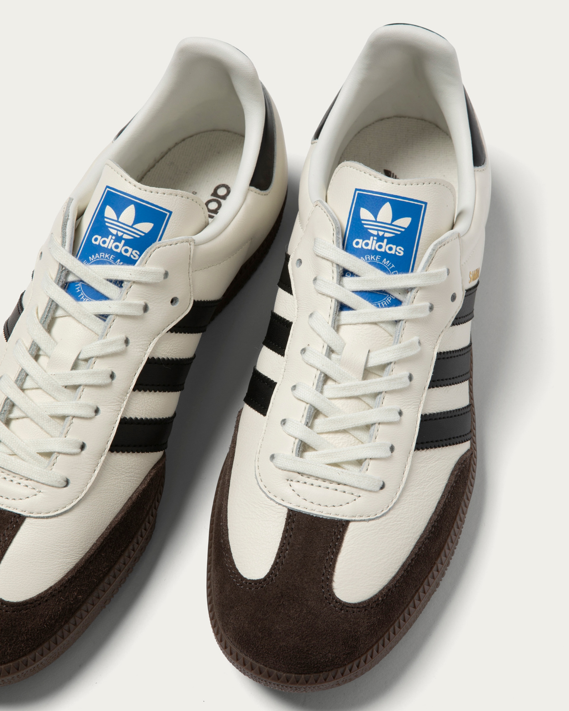 品のあるルックスで人気を博す「SAMBA」の別注モデル。既存のモノトーンの配色をベースに、トゥー部分をクラシカルなブラウンスエードに変更しました。