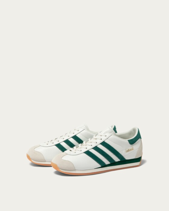〈adidas Originals〉の「COUNTRY JAPAN」を別注展開。アッパーは上質なレザーにし、3本線とヒール部分はスエードに変更しました。アウトソールは少し明るめのガムソールを装着。オリジナルの良さは残しつつ、〈BEAUTY&YOUTH〉らしいクリーンな印象で仕上げております。