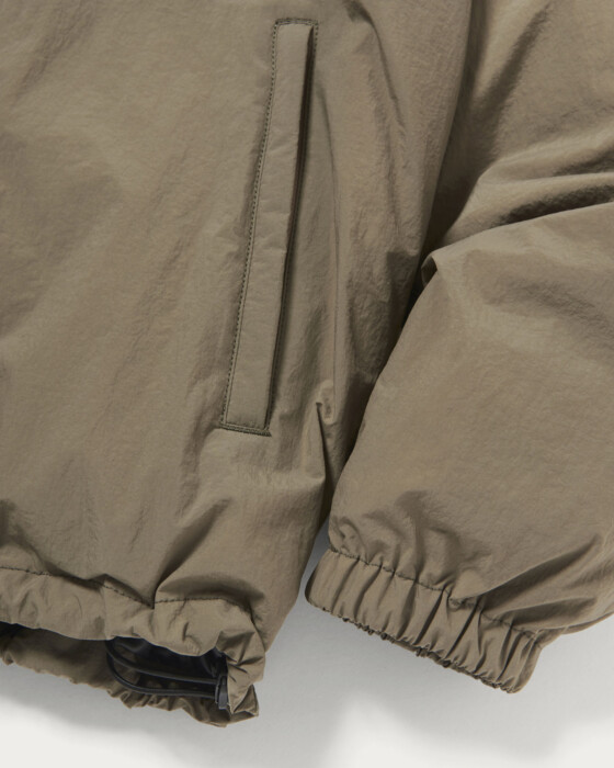「ADVANCED DOWN SYSTEM(ADS)」を使用し、撥水機能を付与したワッシャーナイロンを採用したコーチジャケット。中綿感覚の薄手ながらもダウンを封入しているため軽くふんわりした着心地。ADSは表から見えない中側の構造を指し、ダウンそのもののポテンシャルを、空気の循環が行き渡ることで向上させています。程よくゆったりとしたシルエットは裾のスピンドルにより丸みが調整可能です。