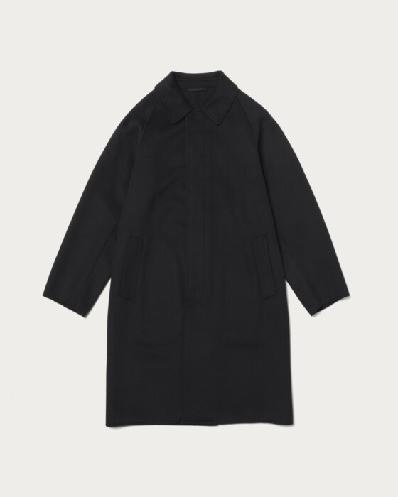 生地をポリエステル混にする事でウール特有の重たさを軽減したリバーコート。リバー製法ならではのバサッと羽織るゆったり目のウールコートです。レイヤードもしやすい、やや緩めのシルエット。 毛並みの整った表面は上品な光沢が特徴です。