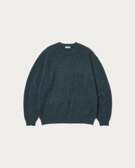 程よい光沢感と上品な毛足がポイントのクルーネックセーター。上質がゆえの自然な状態で毛足のある表情に仕上がっています。