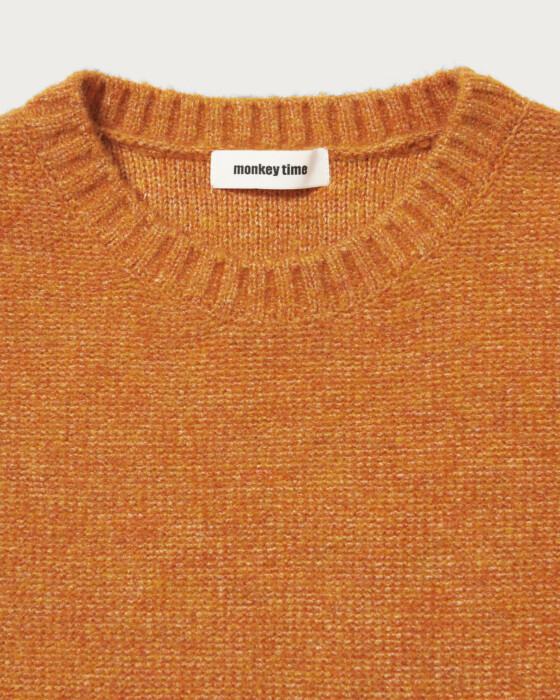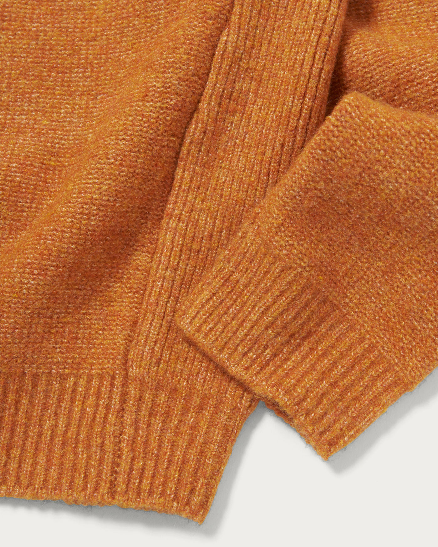 ウール混の発色の良い糸を使用したニット。通常は裏に出るリンキングを外に出し程よいアクセントにしています。厚すぎない肉感で、秋口から防寒時期のインナー使いまで着用期間の長いアイテムです。