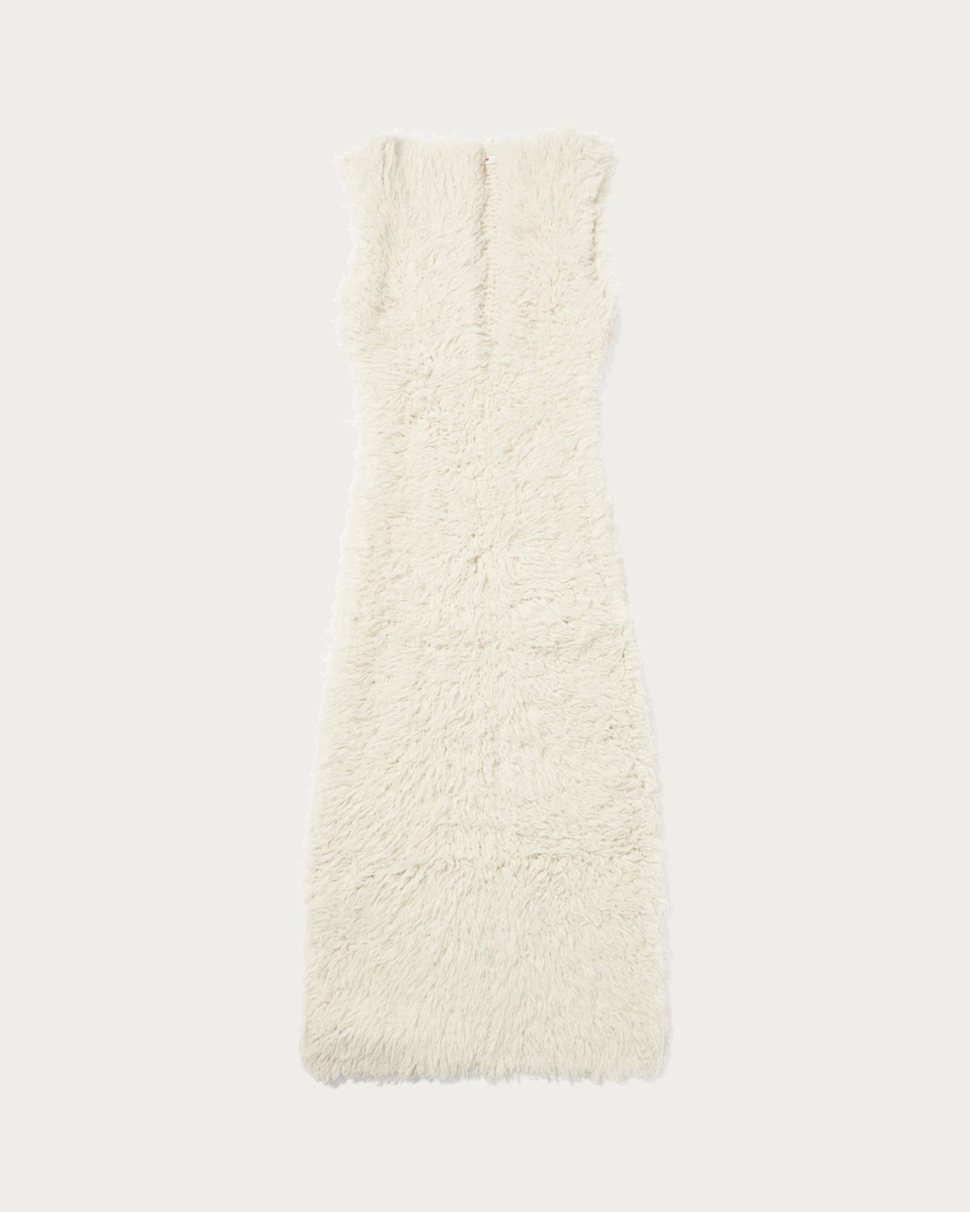 白鳥の羽からインスピレーションを受けたロングドレス。起毛したニットが羽のようにふわふわとして愛らしく軽さのある着心地です。色気があり、美しく繊細で上品な一着。