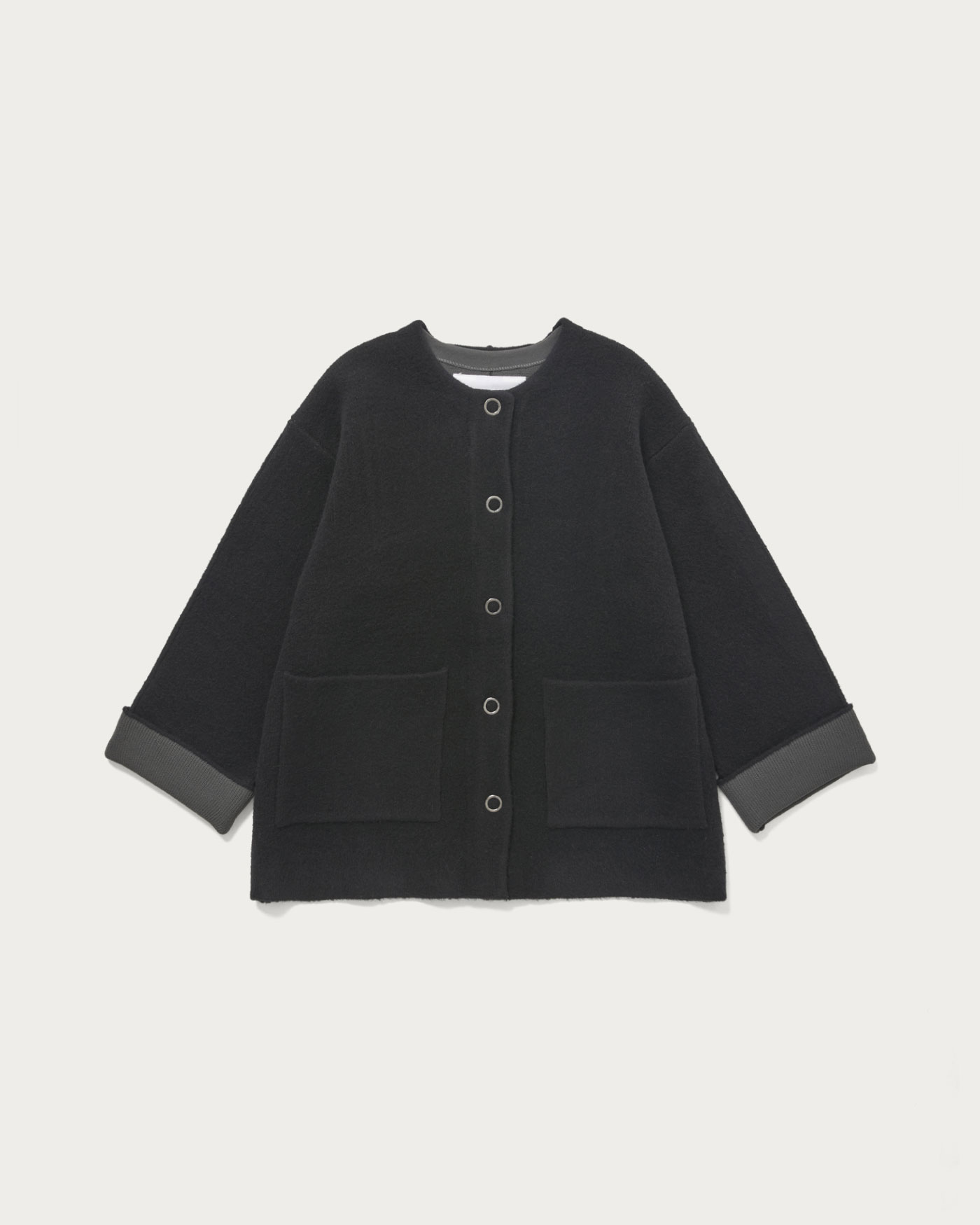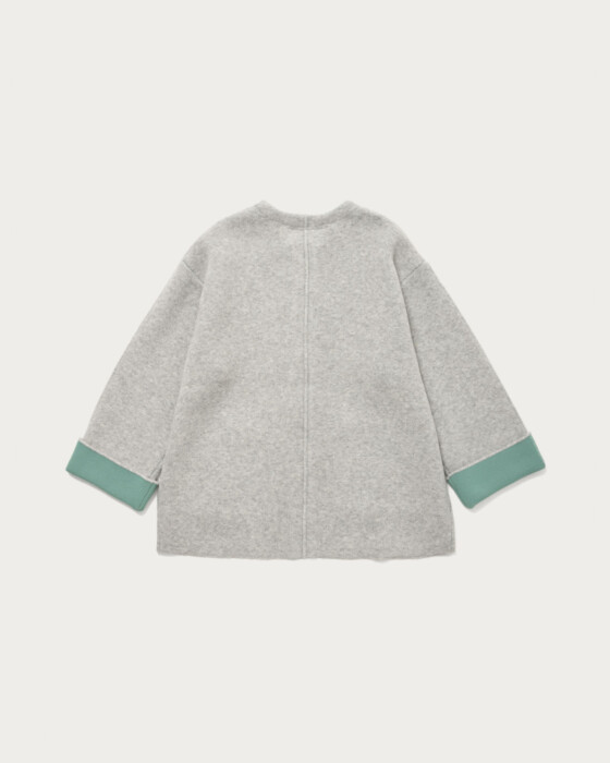 「カーディガンだけでは寒いけどアウターを着るほど寒くない」そんな時にちょうどいいニットでお作りしたアウターです。カーディガン感覚で簡単に羽織れて程良いゆとりがあり、中にも着こめます。リングドットやさり気ない袖のピンタックがデザインのアクセントになっています。