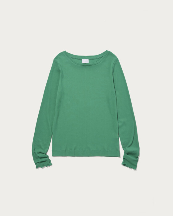 デイリー使いににぴったりの着回し万能なインナーカットソー。袖丈をやや長めに設定し、ニットなどとレイヤードした際に袖からちらりと覗かせた着こなしもきまるデザインにしました。デコルテをきれいに見せてくれるネックデザインがポイント。どんなスタイルにもヘビーユースできるマルチアイテムです。