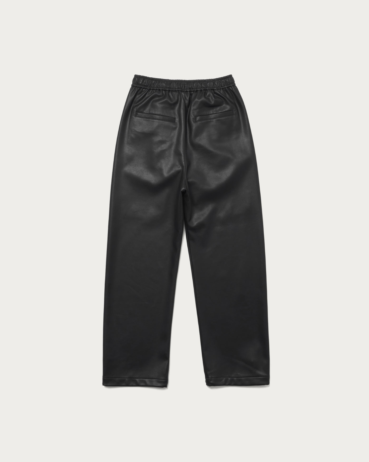 シーズンムードを感じるレザーライクパンツが登場。太すぎず細すぎない絶妙なシルエットバランスで、様々なトップスと相性よく仕上げました。ウエストと裾部分はゴム仕様なので、リラックスしたスタイリングが楽しめます。コーディネートの鮮度を上げてくれる、旬なアイテムです。