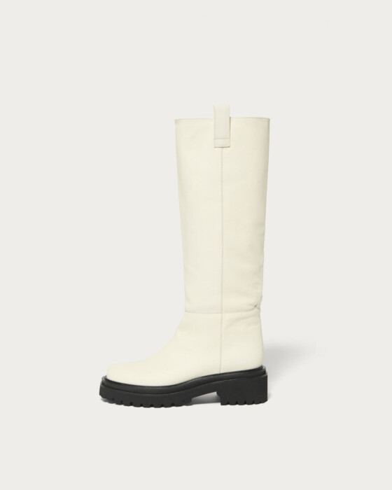 ほどよいボリュームソールが旬な印象のロングブーツは、大人が上品に楽しめるよう本革を使用。履くたびに馴染む、歩きやすさも魅力のひとつです。カジュアルからモード、フェミニンスタイルのアクセントにと、様々なテイスト、スタイルに合わせていただけます。