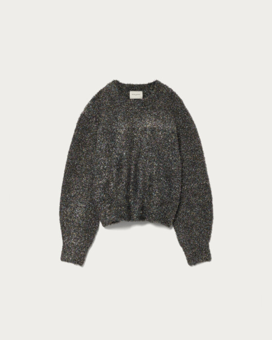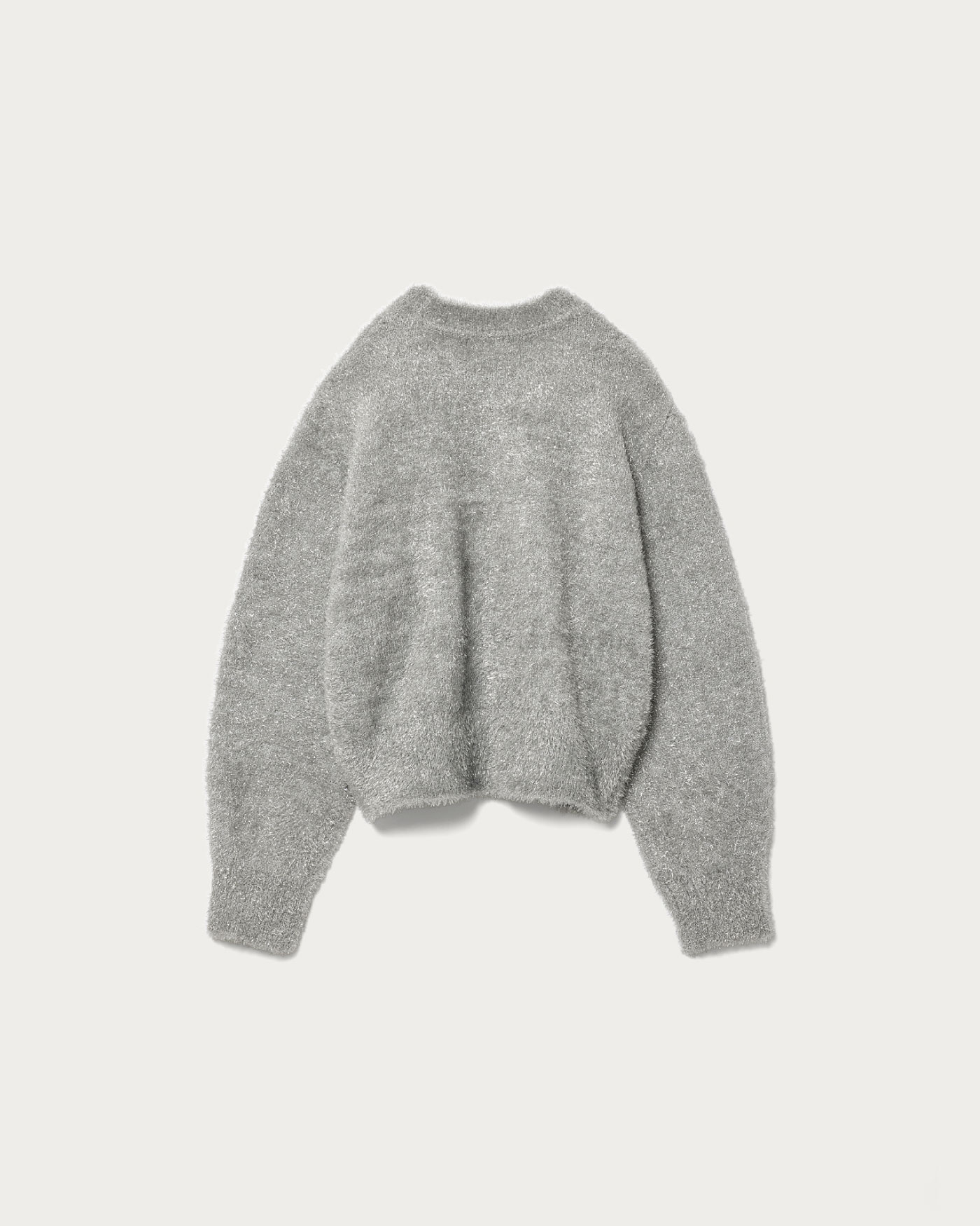 ラメの素材感を活かしシンプルに仕上げたクルーネックニット。コンパクトなサイズに仕上げることで、バランスが取りやすく、ラメアイテムもさらりと着こなせます。普段のコーディネートに合わせるだけで、旬なスタイルが完成するのも嬉しいポイントです。