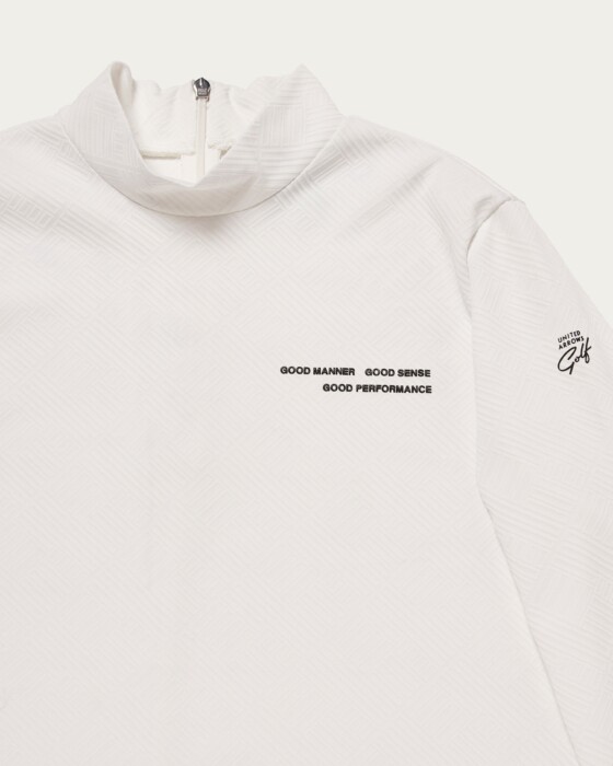 シンプルながら、仕立てが上品な印象のモックネック。顔周りをすっきりと見せるタイトなシルエットのネックには、着脱がしやすいようにジップを配しています。身幅は程よくゆとりがあり、一枚でも様になる一着。