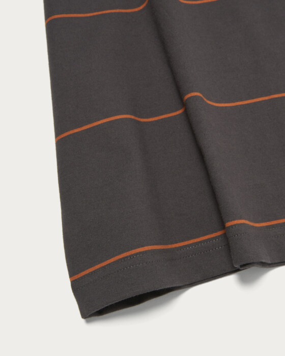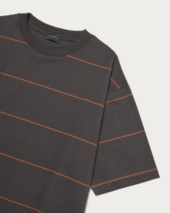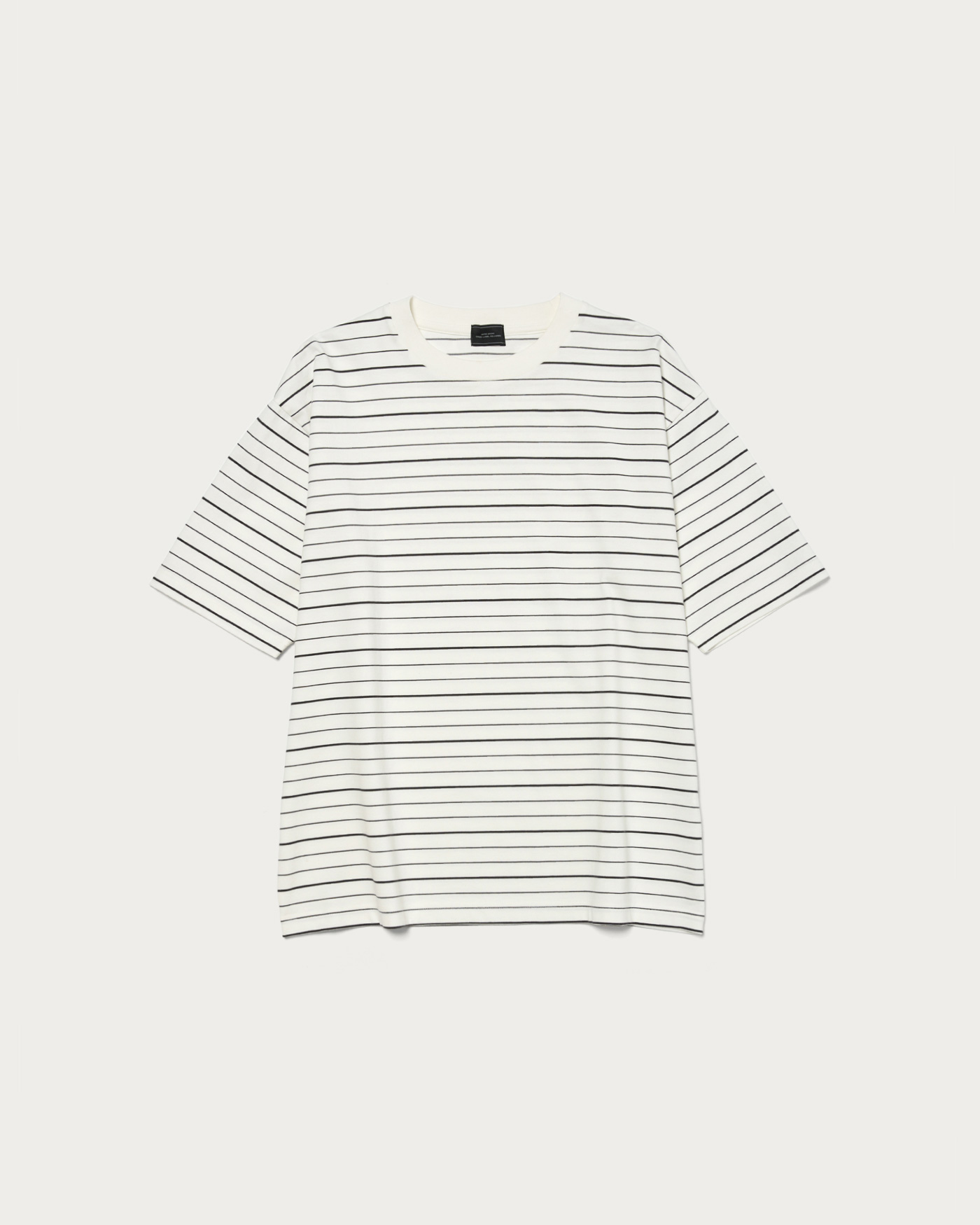 コットン100%の糸を使用した、程よい厚みでしっかりとした生地感のボーダーTシャツ。各色に合わせてオリジナルのボーダーピッチをデザインし、細部にこだわった一着に仕上げました。シンプルながらも個性的なボーダーパターンが特徴です。