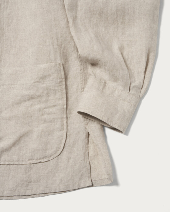 ベルギーのリネンメーカー「LIBECO LAGAE」社のリネン素材を使用したシャツジャケット。ナチュラルな素材感とゆったりとした佇まいが魅力で、上品さとリラックス感を兼ね備えた一着です。3つのパッチポケットを備えたカジュアルなディテールに、ワンピース仕様のイタリアンカラーが品の良いアクセントをプラス。しなやかなハリと自然なトーン、さらに程よい厚みのある生地感も特徴です。