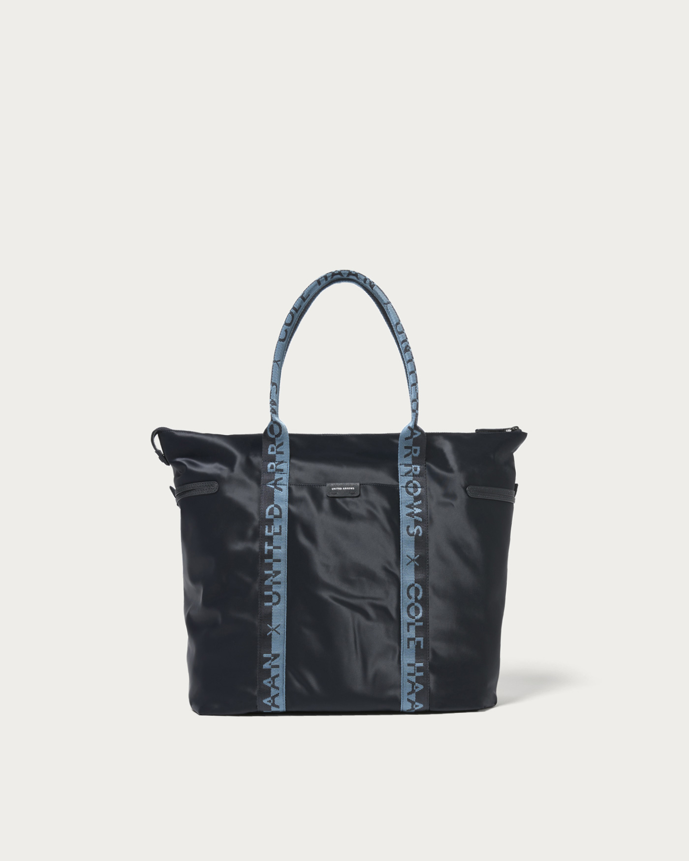 光沢のあるナイロン素材を使用したカートバッグで、持ち手やポケット上部に両ブランドのロゴを配したデザインが特徴です。別売りのIDホルダーを掛けられるレザーループ付き。コールハーンとユナイテッドアローズによる特別なゴルフパックコレクションです。