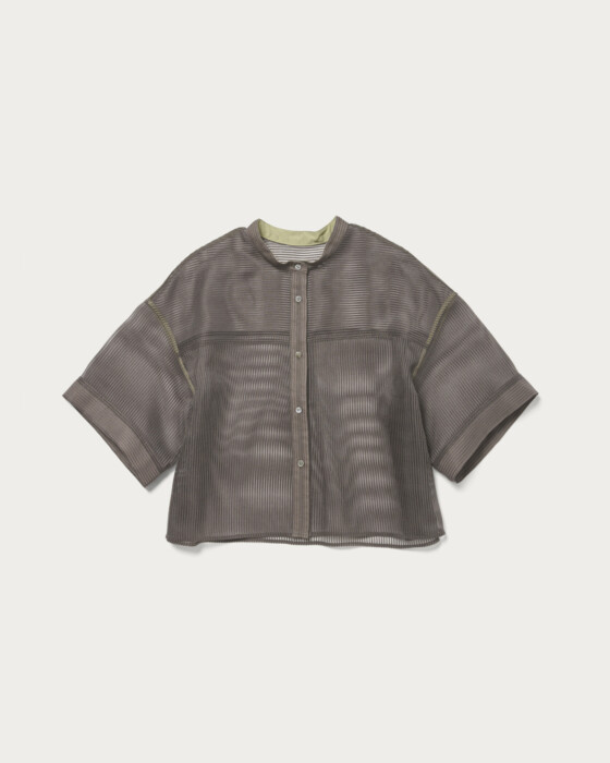 華やかさと今っぽさを兼ね備えたシアーコードレーン素材のシャツは、様々なボトムスに合わせやすい程よい丈感がポイントです。羽織っても閉めてもバランスの良いシルエットにこだわりました。ハーフスリーブなので季節の変わり目から重宝し、一枚でコーディネートがパッと華やぐ着映えシャツです。