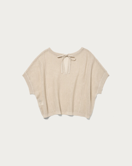 ヘルシーな肌見せが叶うメッシュ編みのニットは、ゆったりとした身幅と程よいクロップド丈のバランスが今シーズンらしい一着です。前後2WAY仕様なので、気分によって着こなしを変えられるのも嬉しいポイント。取り入れるだけでこなれ感のあるコーディネートが完成します。