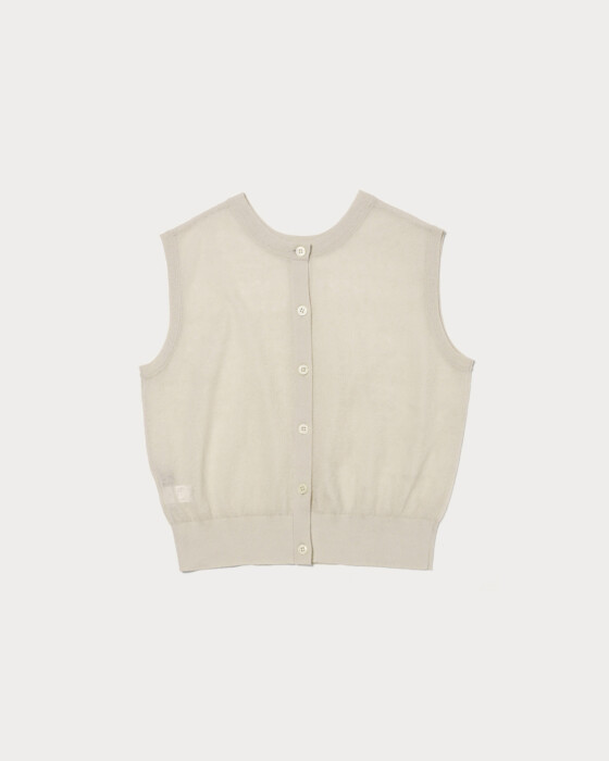 2WAYデザインで着こなしの幅が広がるノースリーブニットは、軽い着心地のシアー素材で真夏まで活躍するプルオーバー。肩にかかるノースリーブでデイリーに着回しやすいデザインです。ボタンを開けてジレ風に着たり、着方のアレンジを楽しめます。シンプルなデザインながら、さらりと着るだけで映える一枚です。
