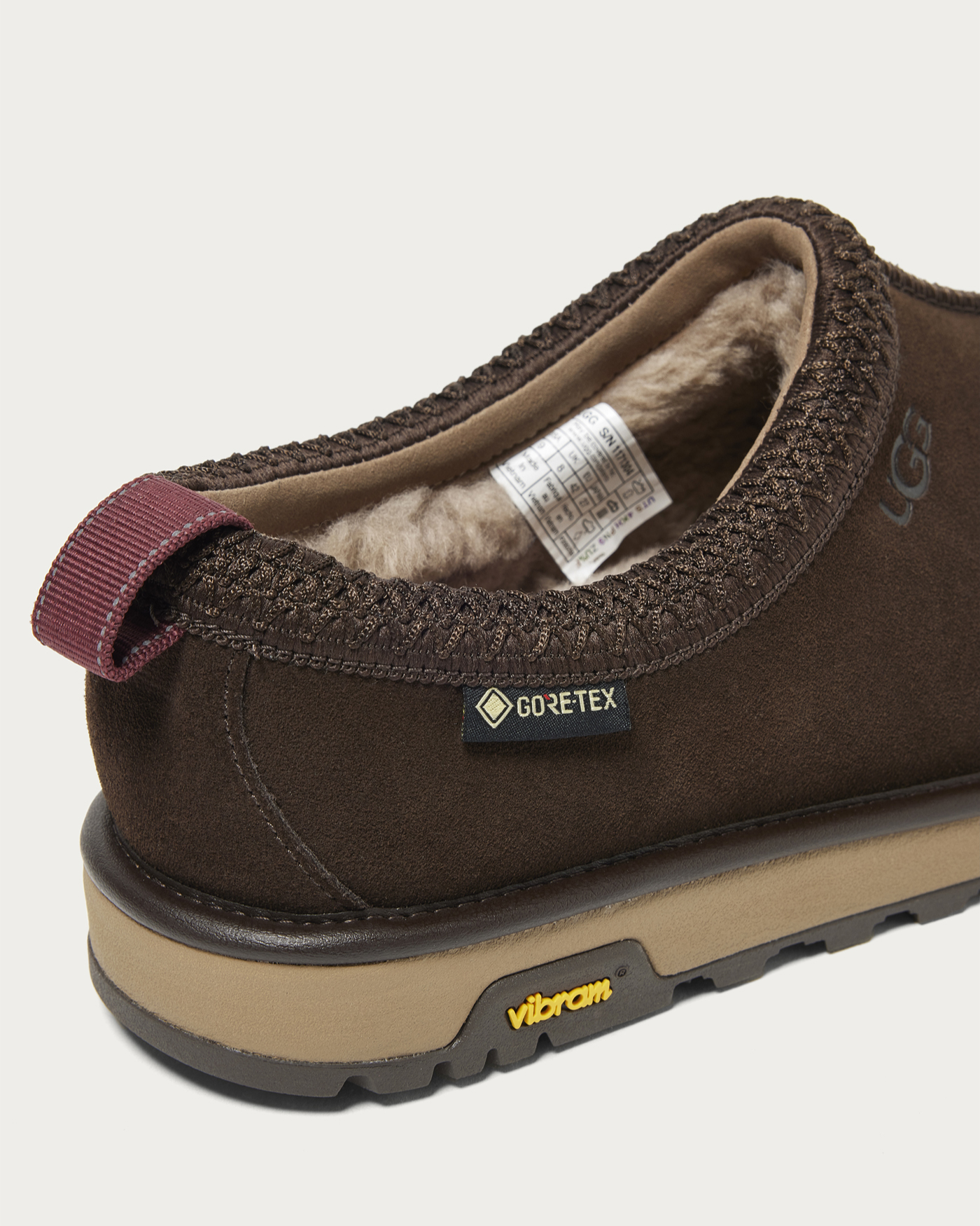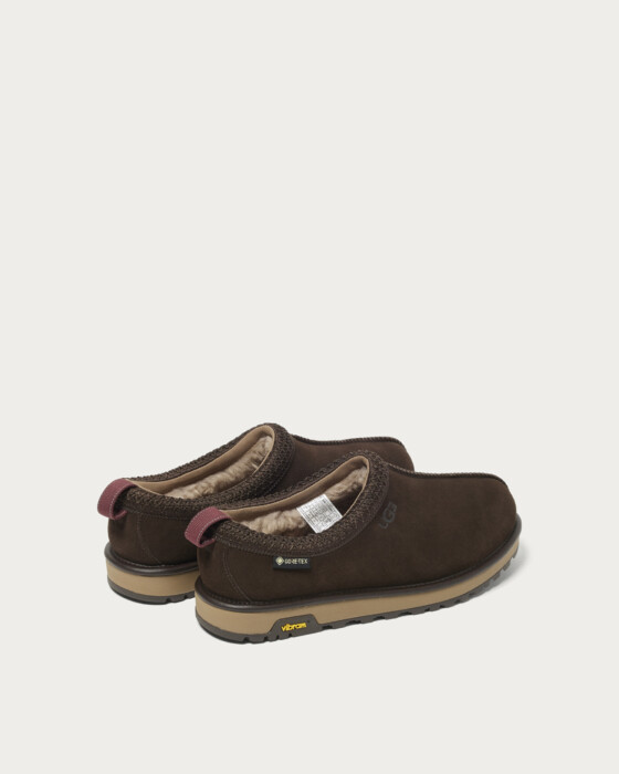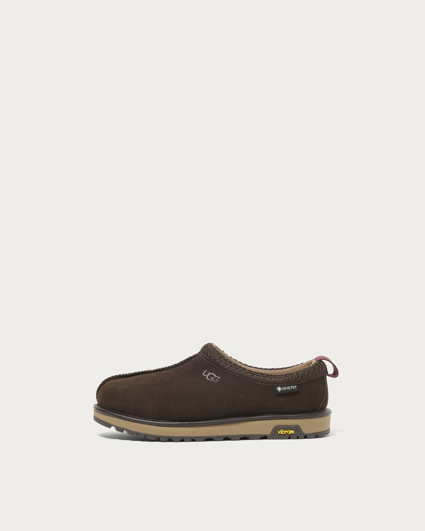 上品なダークブラウンを纏った、〈ビューティ&ユース〉直営店限定カラーの〈アグ〉の「タスマン」。アッパーには防水性のあるスエードを、内側にはゴアテックスメンブレンを採用し、サトウキビ由来の軽量EVAのミッドソールとグリップ性に優れたビブラム®︎アウトソールが足元をしっかり支えます。