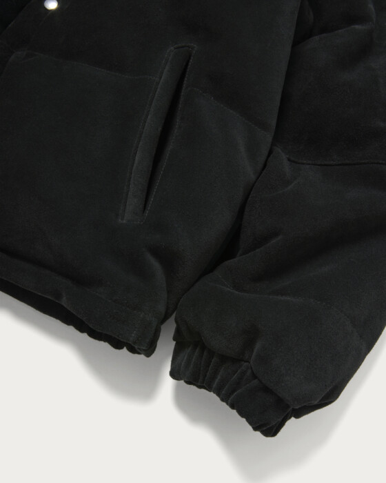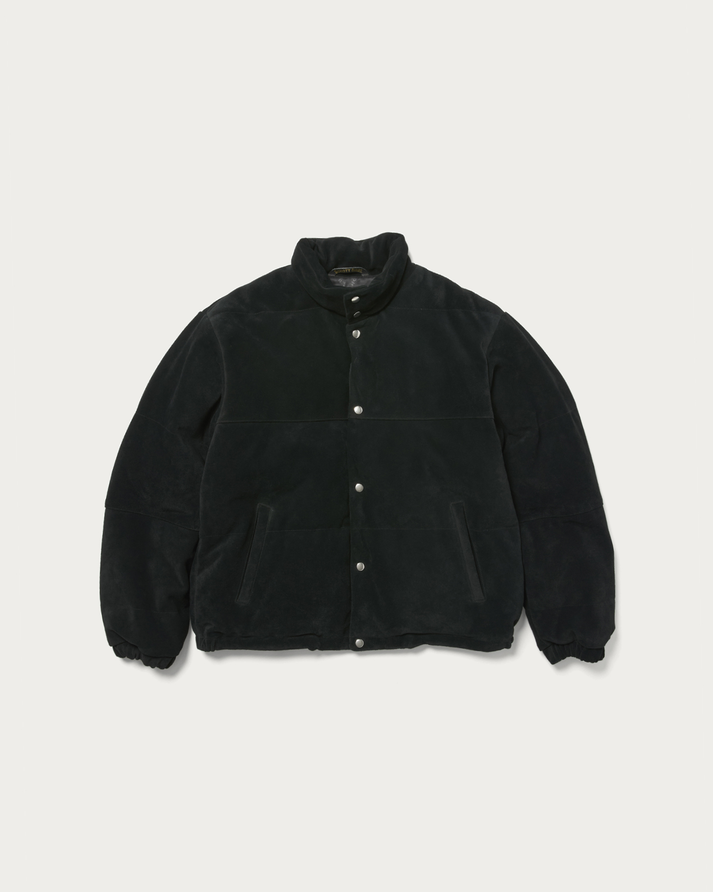 昨年、早々に完売した別注レザーダウンジャケットを、今シーズンはスエードに変更して別注しました。短丈で身幅にゆとりをとった丸みあるシルエットが今らしく、よりファッションアイテムとして昇華させました。