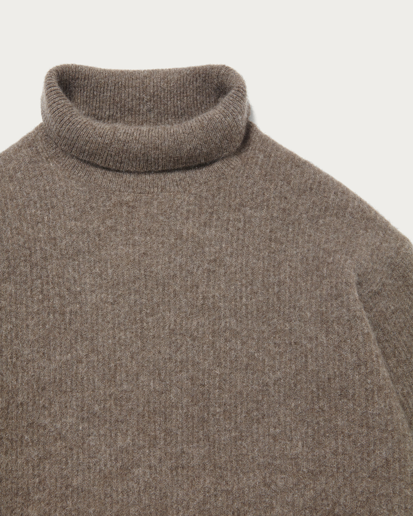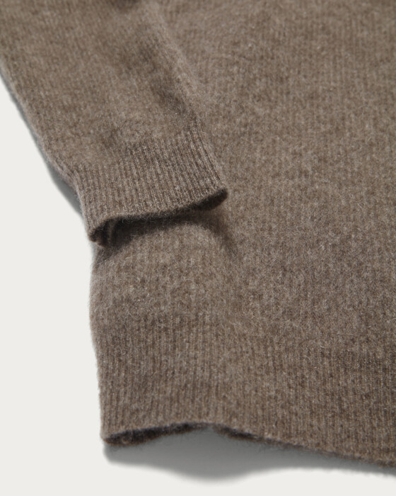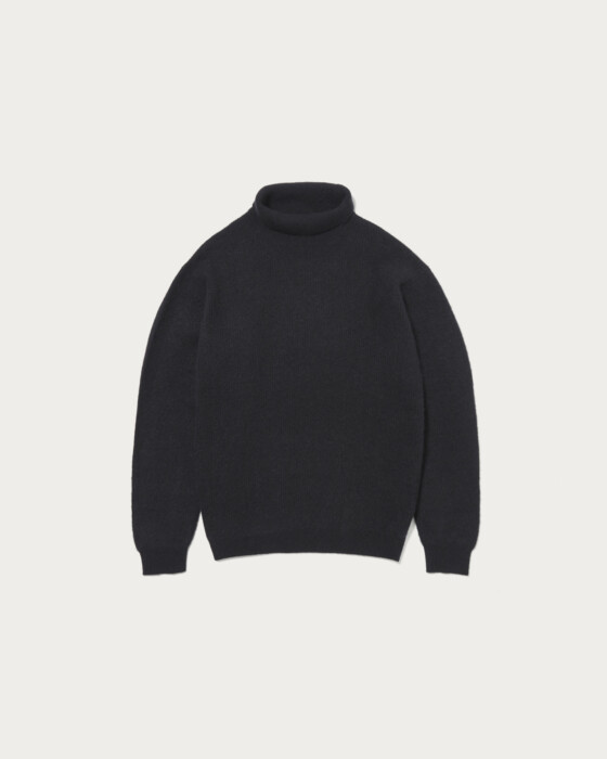 上質なヤクの毛を原料に採用し、ヘアリーな表情に仕上げたセーター。程よいゆとりを確保したジャストルーズなシルエットで素材の魅力をいかしたシンプルで合わせやすいデザインです。やや低めのタートルネックデザインになっております。