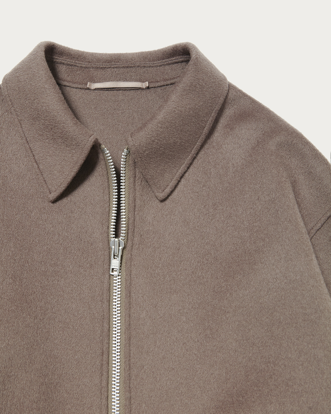 リバー縫製のショートブルゾン。フロントにはシンプルでミニマルな佇まいながらショートビーバー仕上げの生地と、高級ファスナーブランド「EXCELLA®」を使用し、高級感漂うデザインに仕上げました。