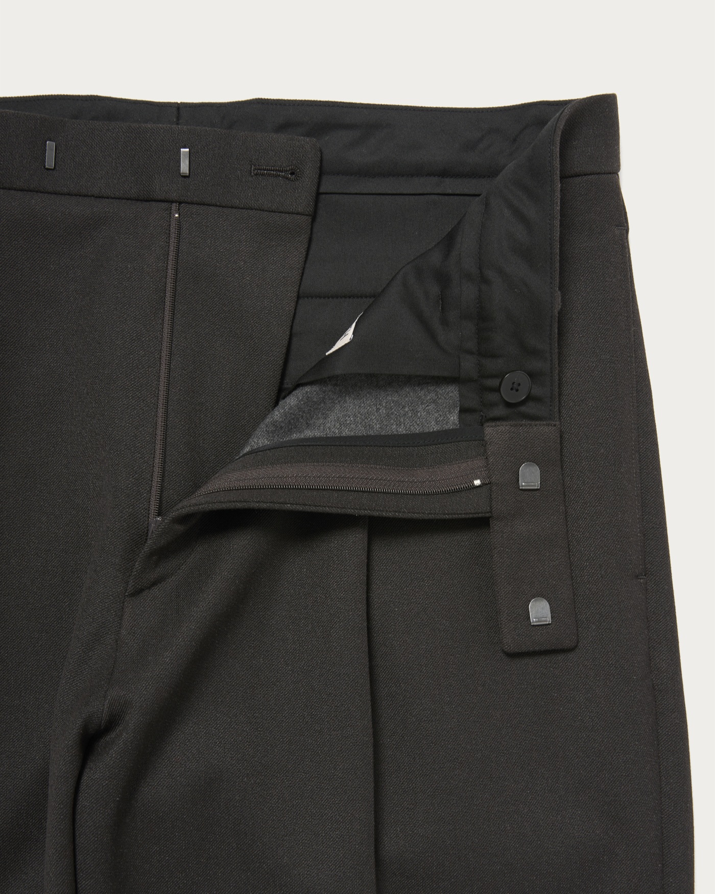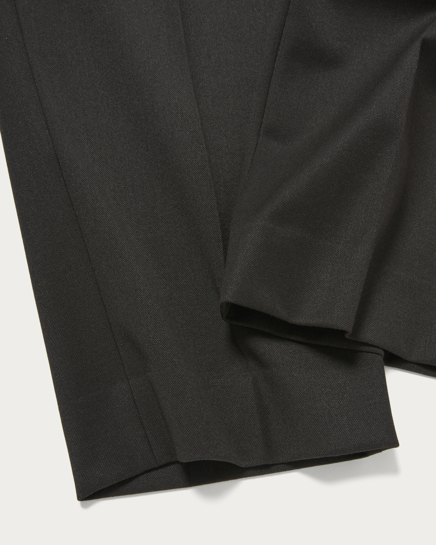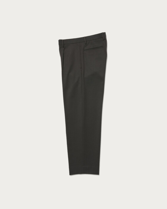 〈ビューティー&ユース〉の中でも太目なシルエットで作成したスラックス。厚みのある生地でもきれいな落ち感が出るシルエットに整えました。右腰ポケットの中にはコインポケットを配備して機能的な点もポイントです。