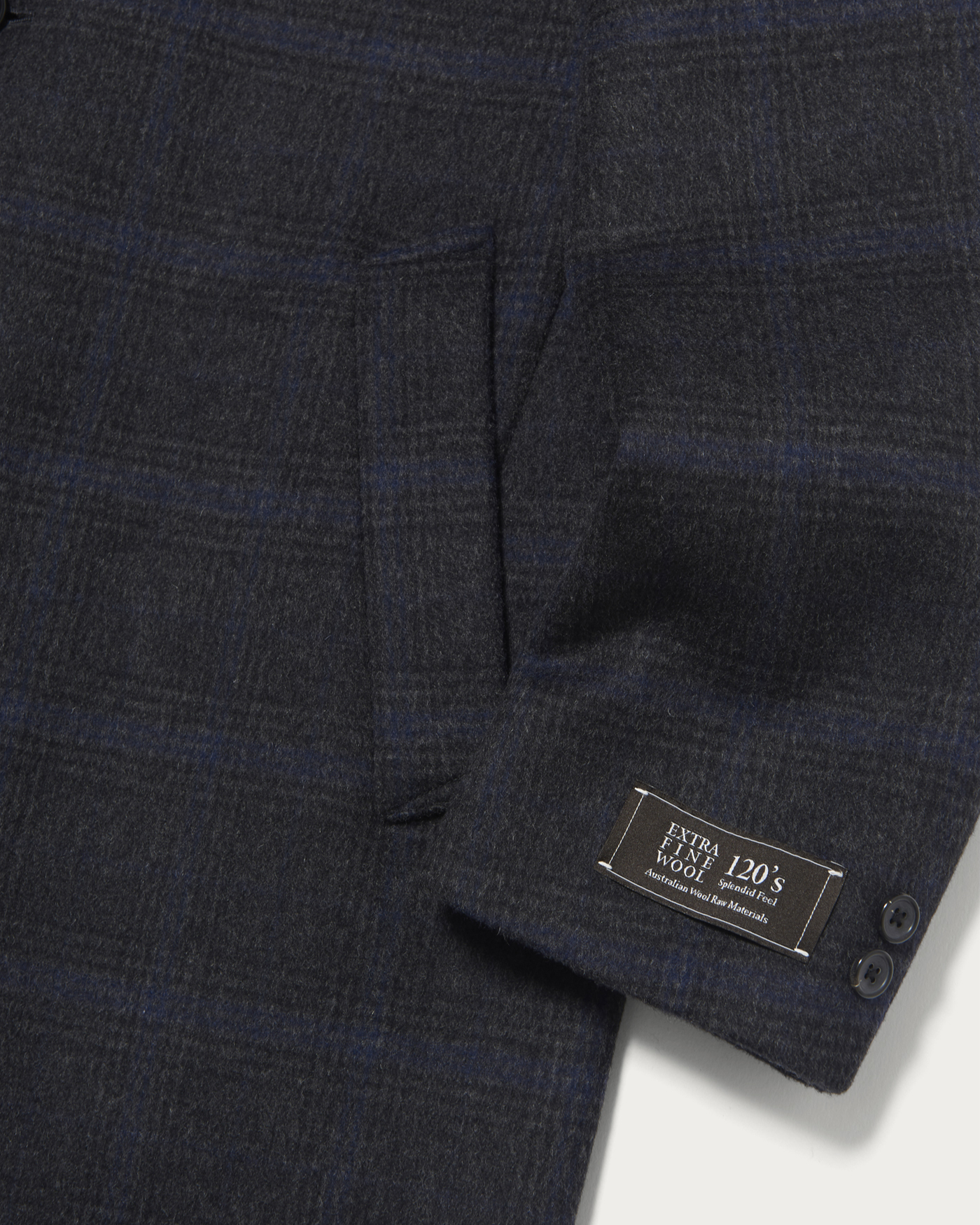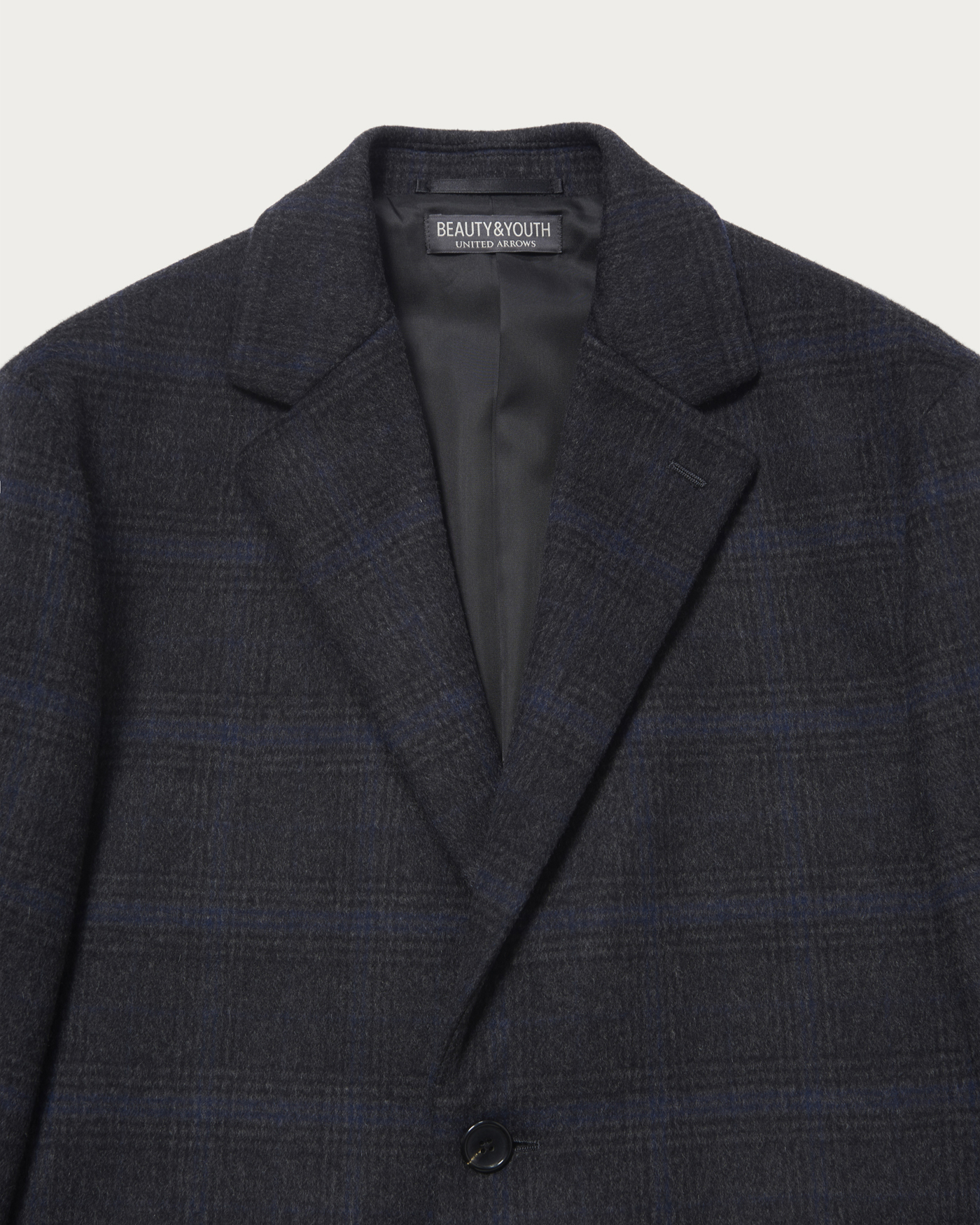 スマートな佇まいをそのままにアームホール等に少しゆとりとることで、インナーの収まりが良いコンパクトなシルエットです。さらに素材はスーパー120s別注メルトンを使用しウール75%全てに原毛自体が長いスーパー120sを使用し、滑らかさと上品なツヤを生地に与えました。また、二重織にすることで生地に厚みとしなやかさを付与し、より立体的に仕上がっています。