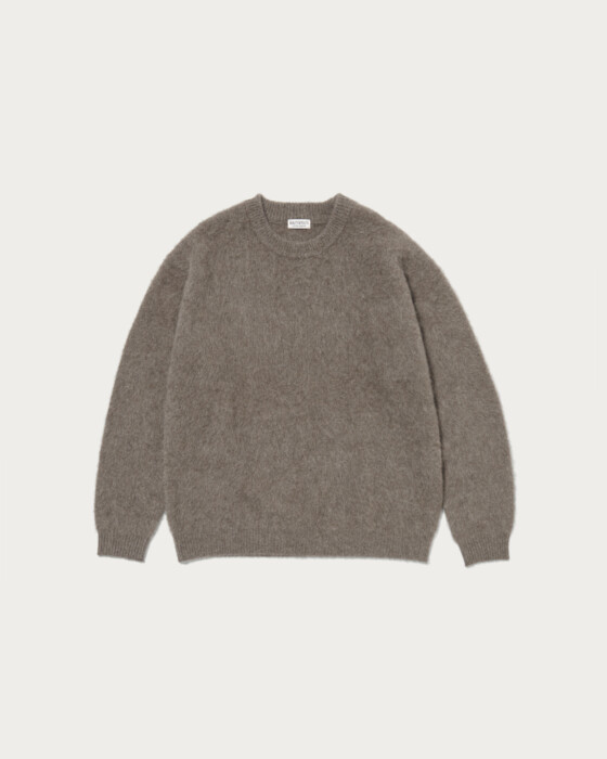 上質なヤクの毛を原料に採用し、ファー加工でヘアリーな表情に仕上げたセーター。程よいゆとりを確保したジャストルーズなシルエットになっています。素材の魅力を全面にいかしたシンプルで合わせやすいデザインです。