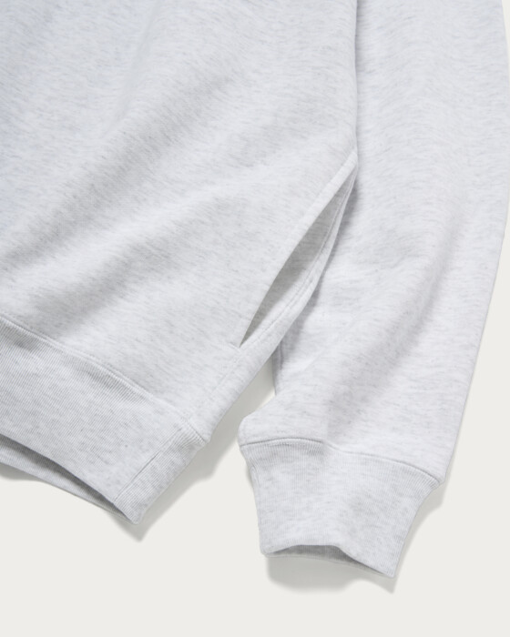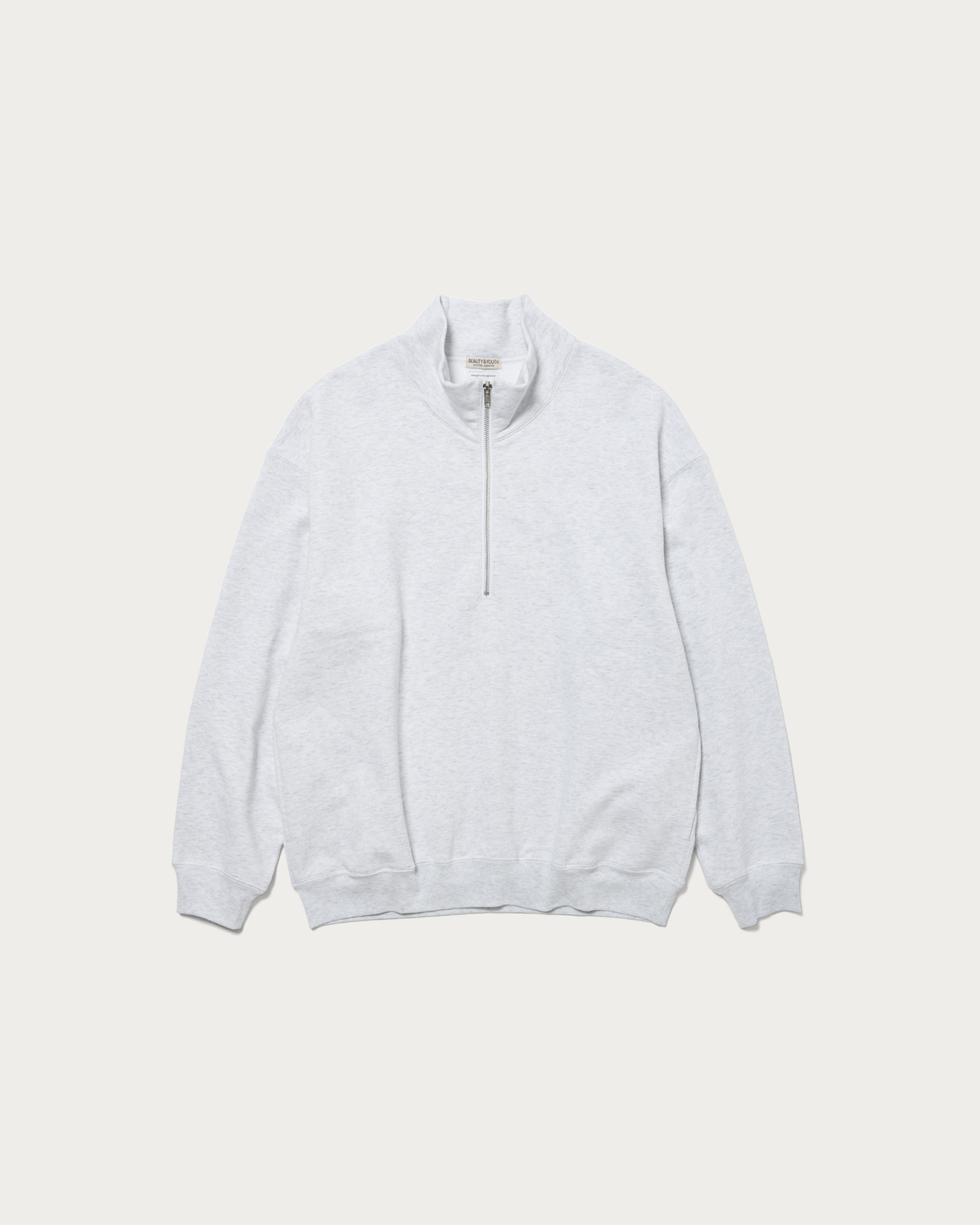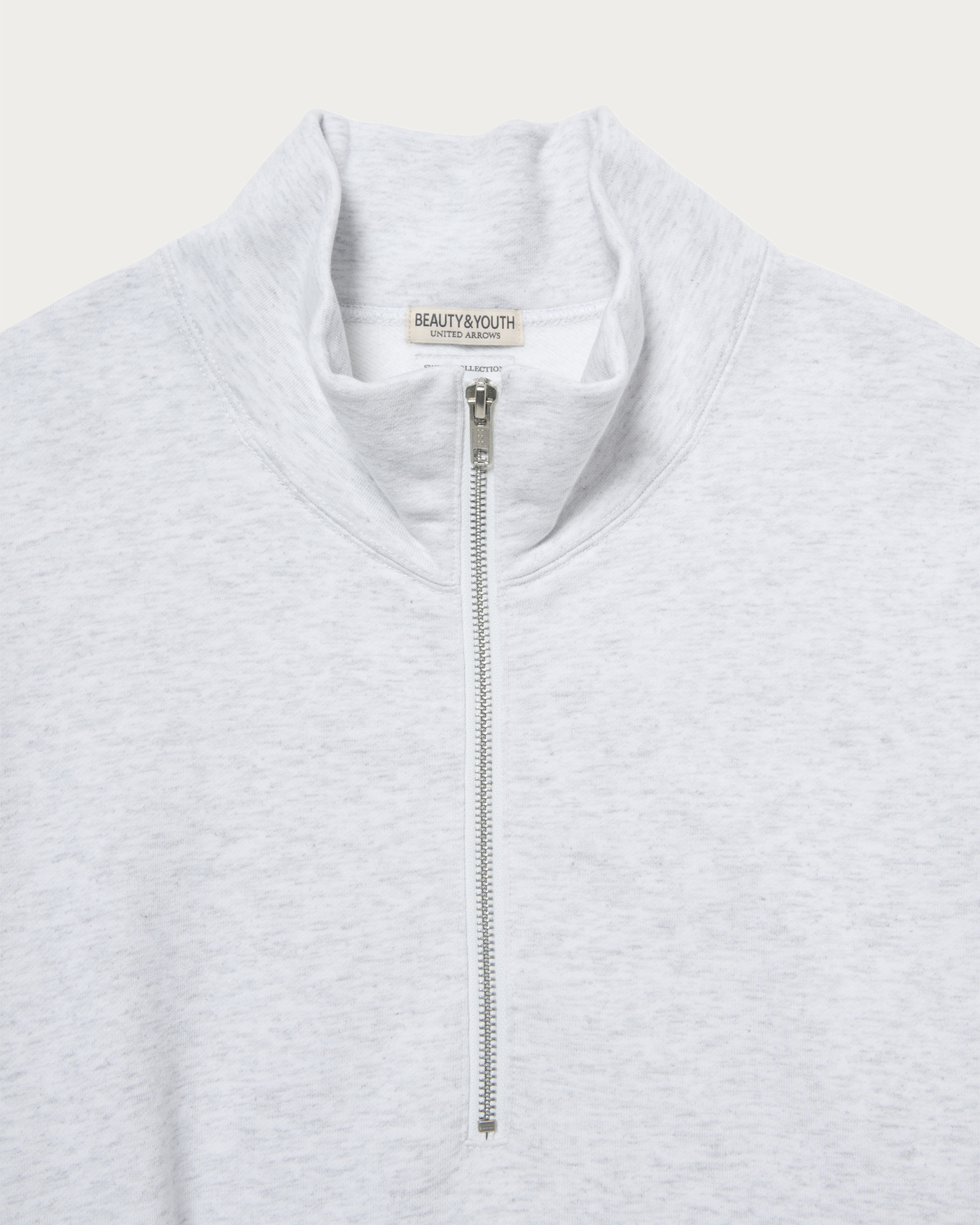 〈ビューティー&ユース〉のスウェットコレクション。ハーフジップは、衿を高くし寝かせても着用可能な2WAY仕様。アウター感覚で着れる腰ポケット付きです。バイオシルケット加工を施し、表面の毛羽をなくした綺麗な表情がクリーンな雰囲気もポイントです。