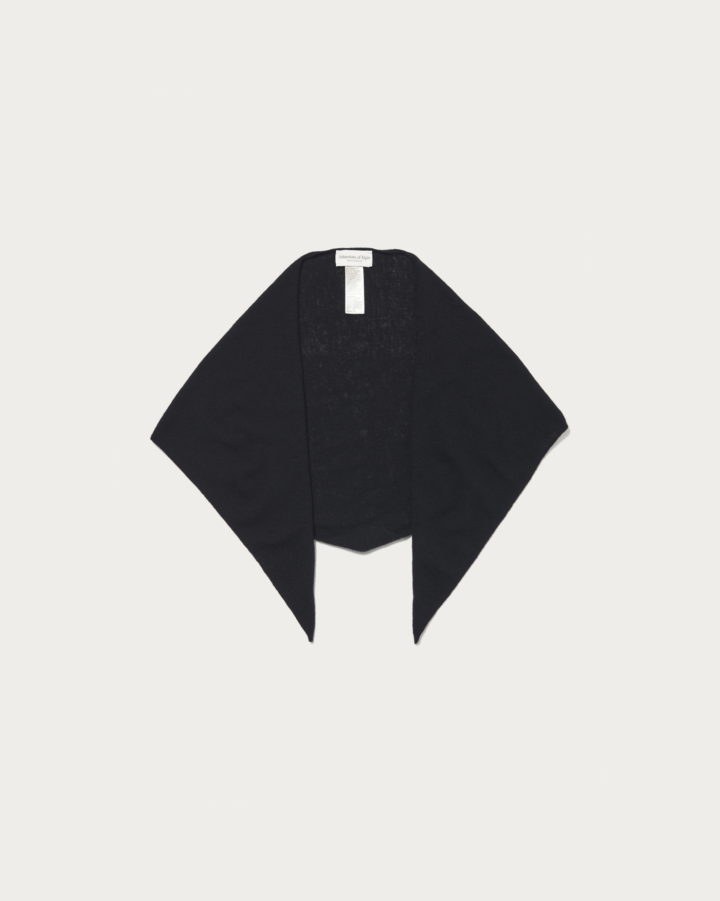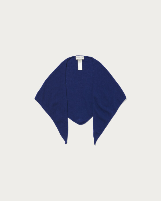 ジョンストンズで三角型ストールを作成。インラインベースのモデルを大きくして頭から被れる大きさにアップディトして頂き素材もウール×カシミアに変更して付け心地と程よいハリ感をだして作成。