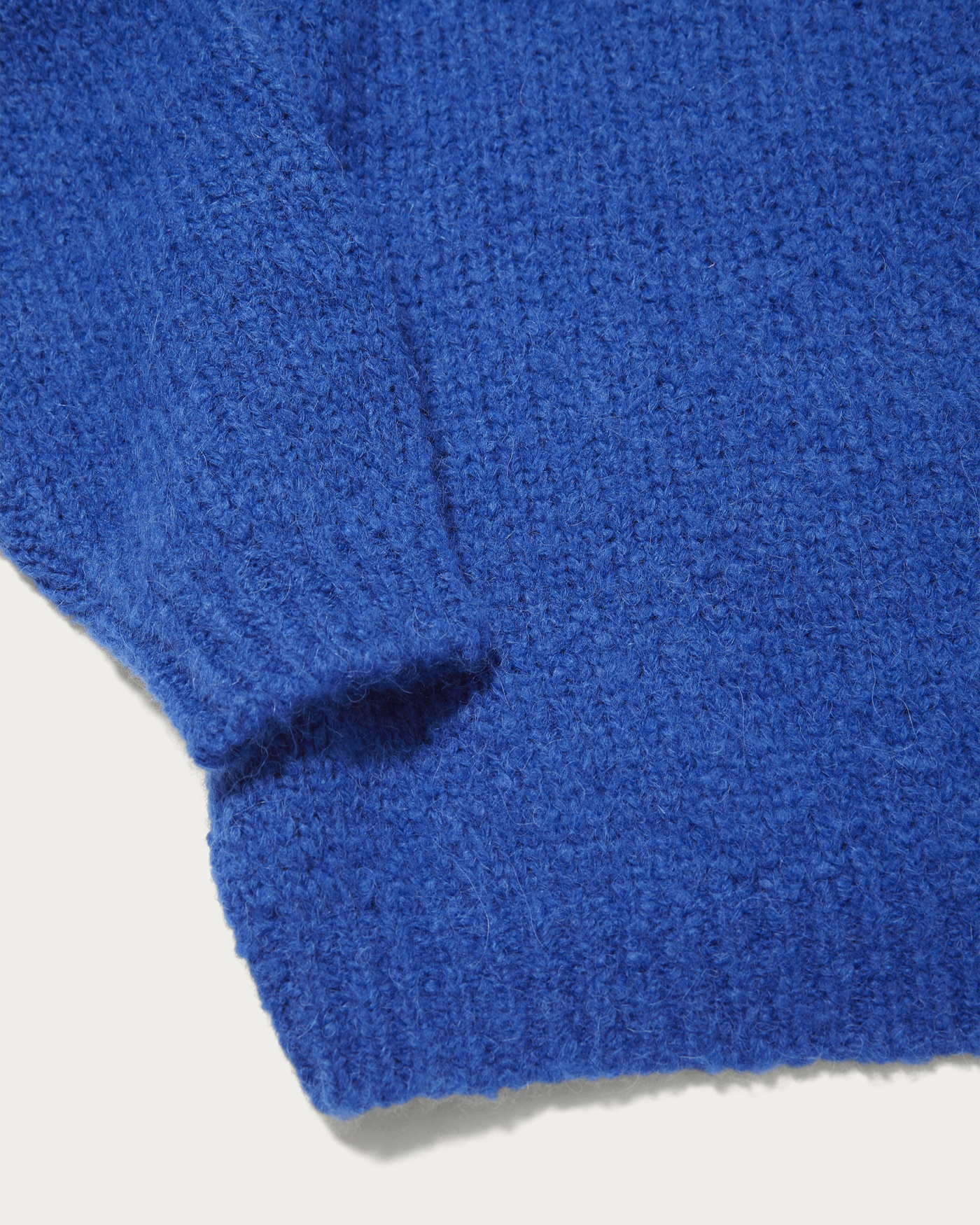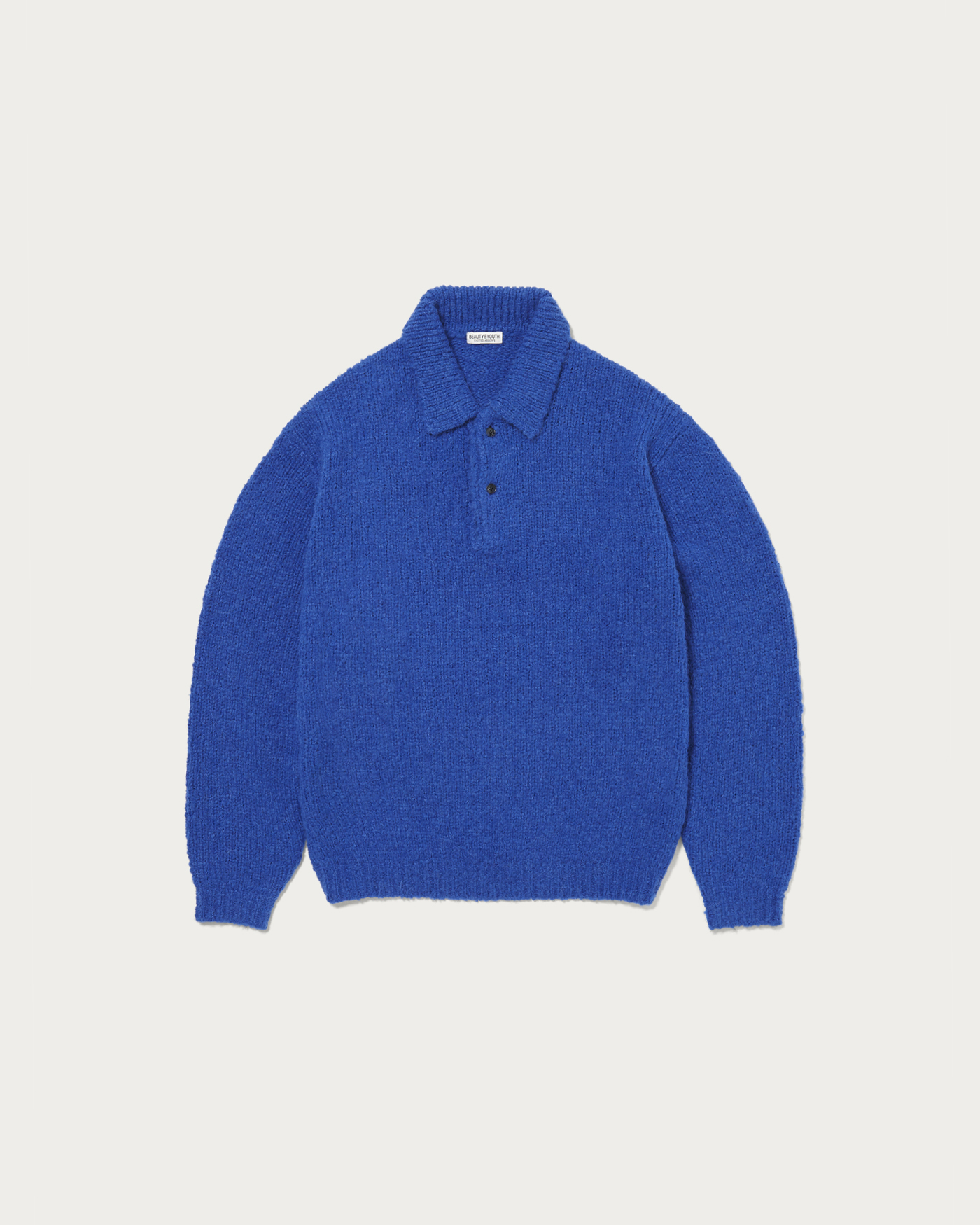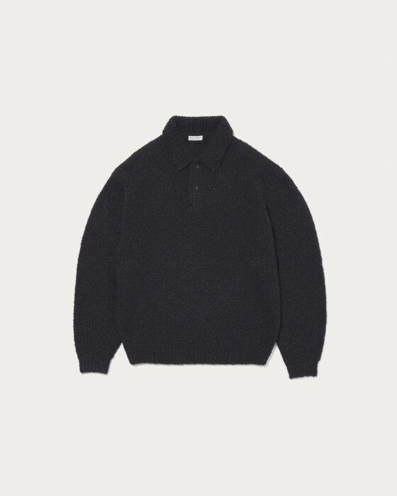 泡のようにブクブクした立体感のある表面感が特徴的なバブルヤーンを採用したニットポロです。ボリュームがありながらも糸形状の特徴により軽く仕上がっています。シンプルなデザインですが、立体感のある素材により存在感のある1着に仕上がっています。程よいゆとりのリラックスシルエットです。"メゾンブランドご用達のイタリア「LINEAPIU」社が手掛けたブークレ糸を糸の状態で起毛した特殊な原料を採用しています。フワッとした質感と表面感が特徴です。形状の特徴もありボリュームがありながらも比較的軽く仕上がっているのも特徴です。