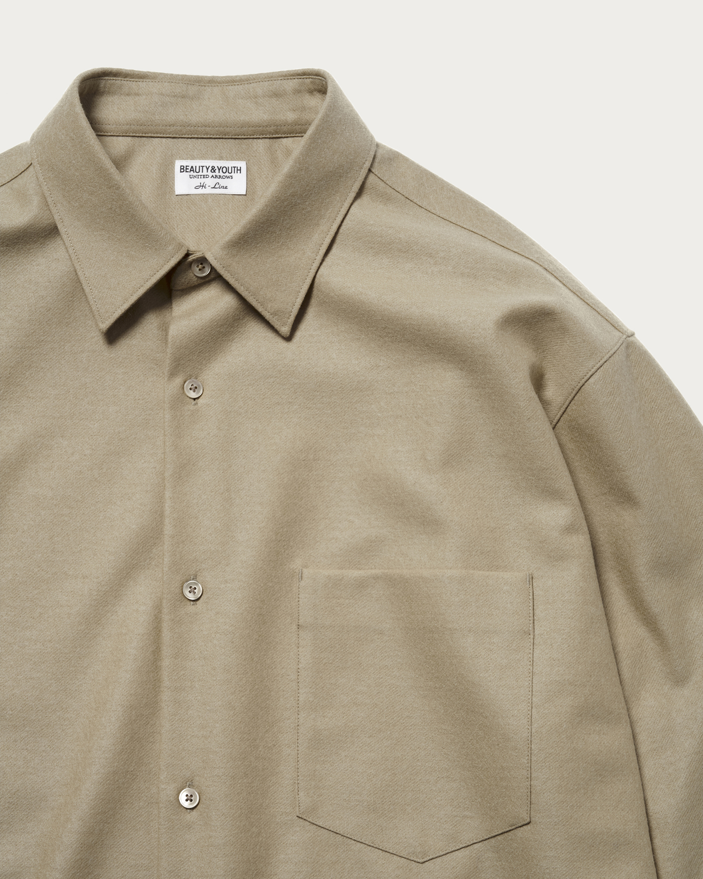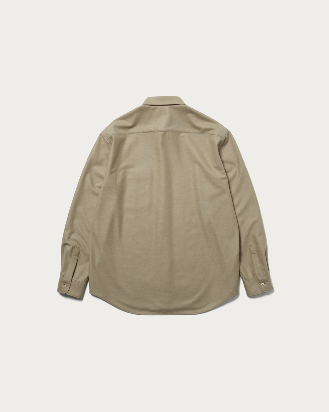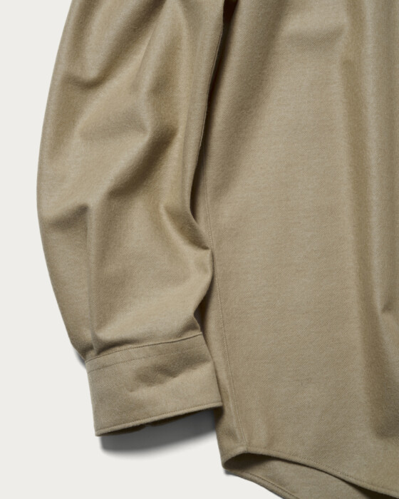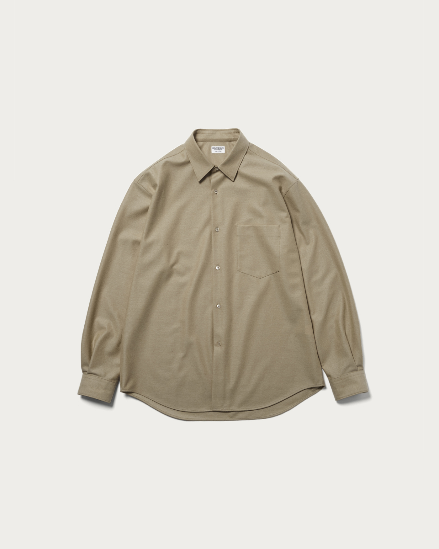 細番手の上質なウールに圧縮加工を施し、軽くしなやかに仕上げています。特殊ミシンMlock(R)を使い、縫い合わせる時に必要な縫い代を極限まで細くする事で、素材の良さを引き出しています。見た目にも美しく、肌に直接触れる部分を最小限に、着心地の軽さ、快適さを追求しています。