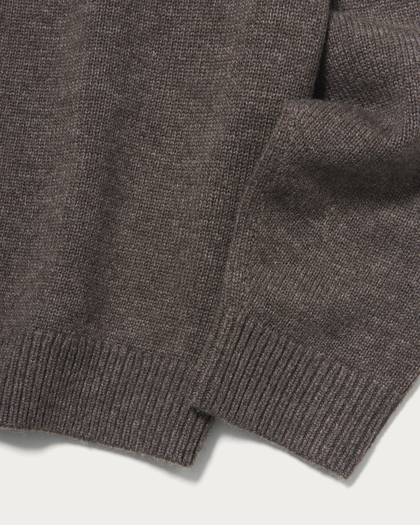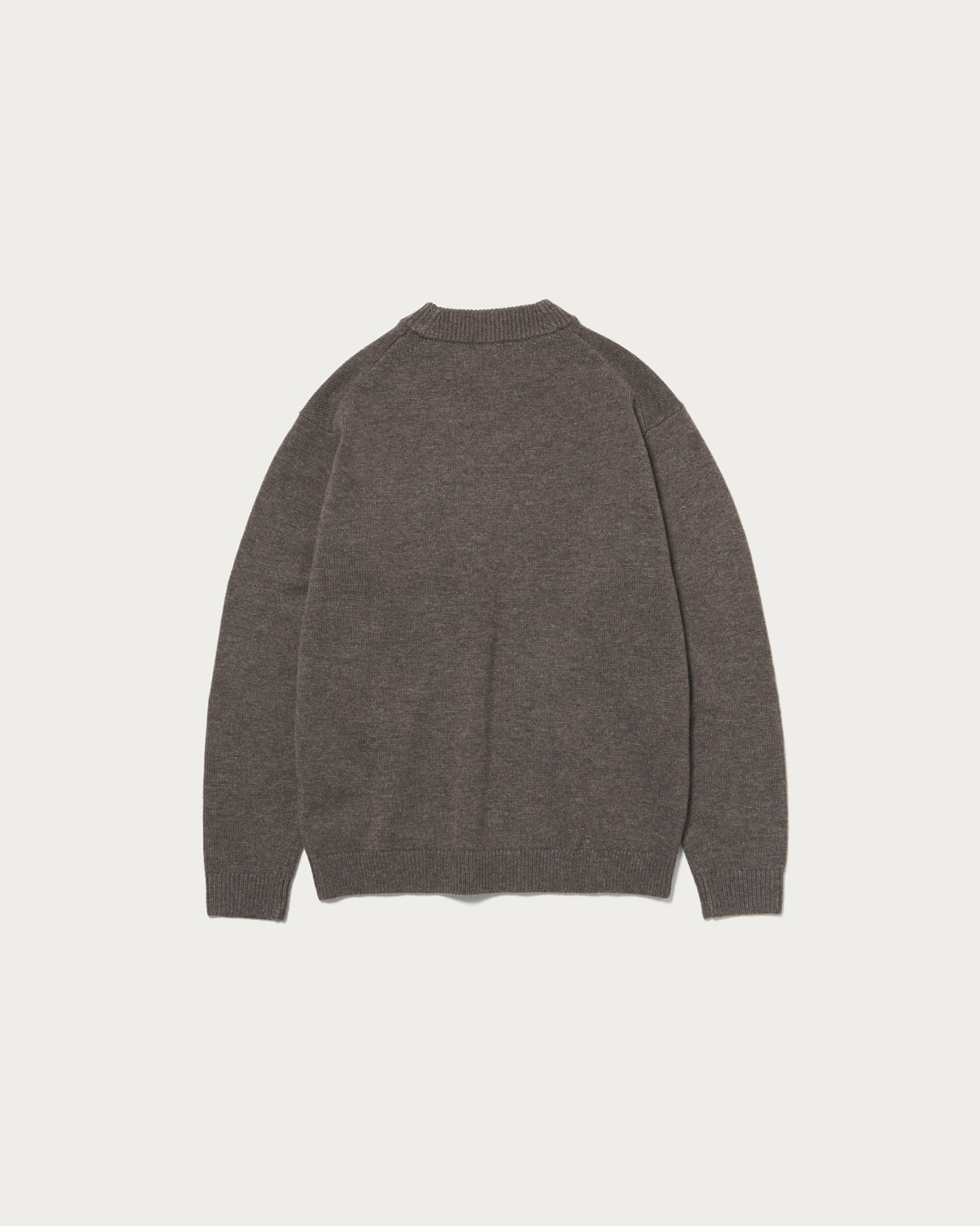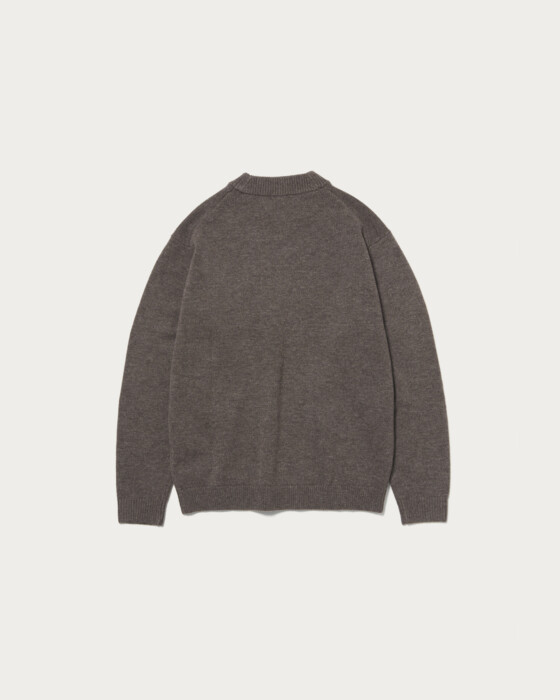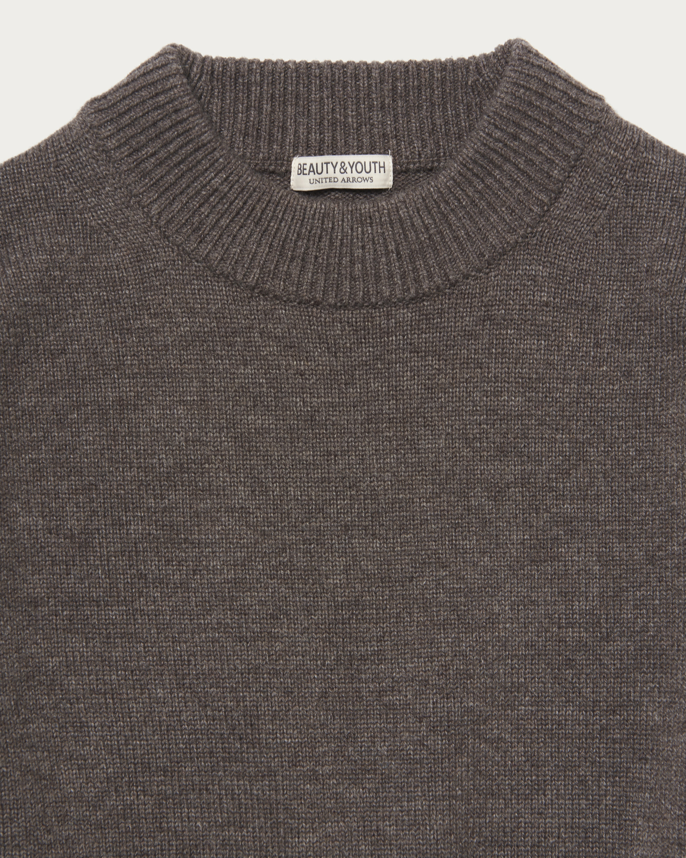 クルーネック以上、一般的なモックネック未満の絶妙な高さにこだわったモックネックがポイント。1枚で着ても程よい存在感があり、アウターを羽織っても埋もれず、品のある印象をキープできるバランスの良さが魅力です。ウール・ナイロン・カシミヤをブレンドした、非常になめらかで肌触りの良い糸を使用。糸量をしっかり確保することで、程よい重みと着応えのある一枚に仕上げています。