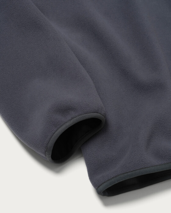 新型のシャツタイプブルゾン。袖裏にはメッシュ生地を採用し、着脱時の滑りを向上させました。さらに保温性を向上させる、エアロゲルを塗したボンディングフリースは、表面がフラットになり、メルトンのような上品な雰囲気に仕上がるのも特徴です。
