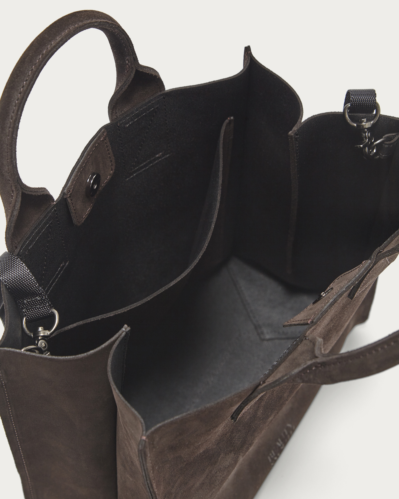 シンプルながらも細かなステッチワークなど洗練されたディテールが際立つデザイン。開口部にはボタンを配し内装にはコンパクトなポケットを搭載し、付属するショルダーストラップを装着することでショルダーバッグとしてもお使いいただける便利な2WAY仕様です。