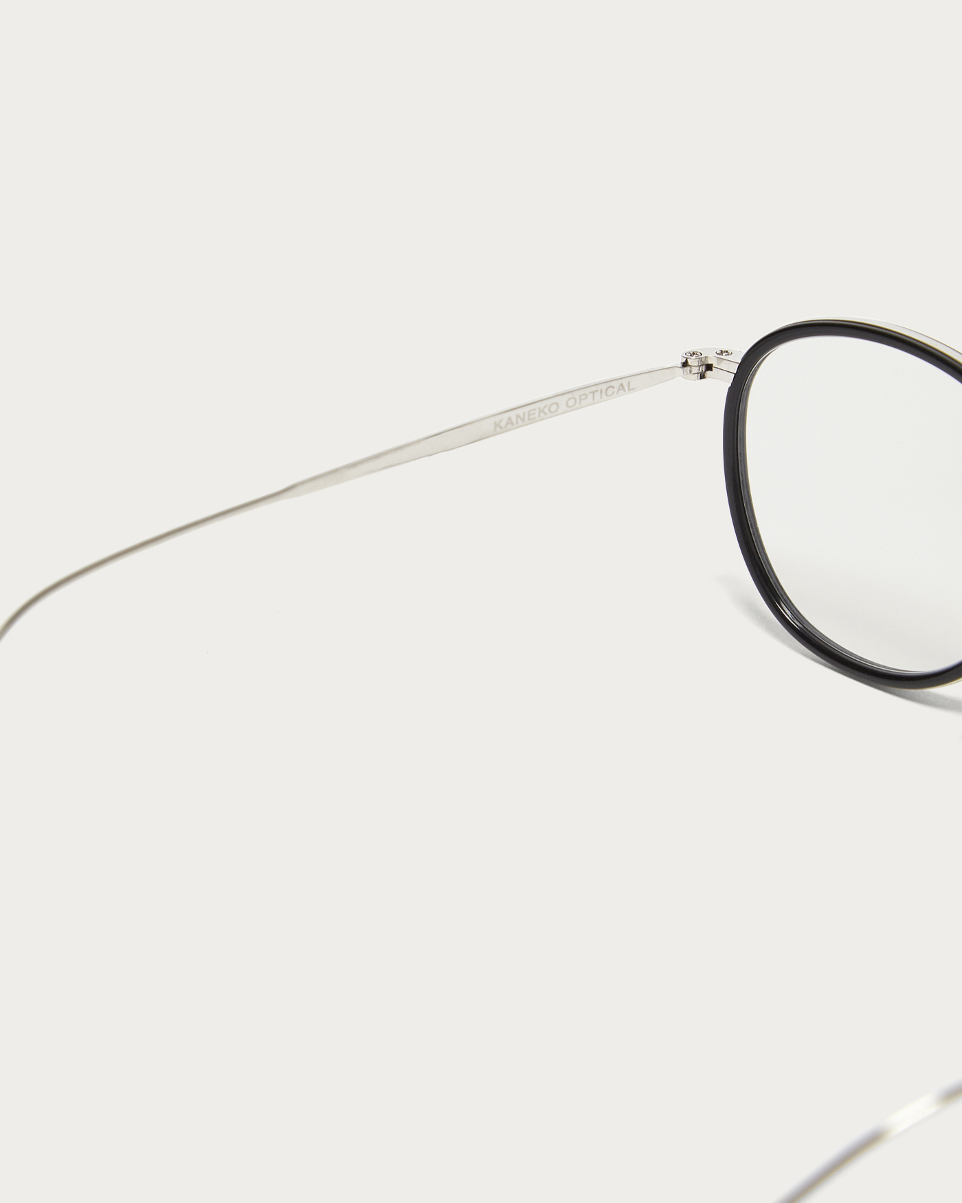 プラスチックとメタルを組み合わせた、職人技が光るコンビネーションフレーム。玉形には、幅広い顔立ちやスタイルに馴染むボストンシェイプを採用しています。クラシックな佇まいのなかに、さりげない個性を添えてくれる一本です。