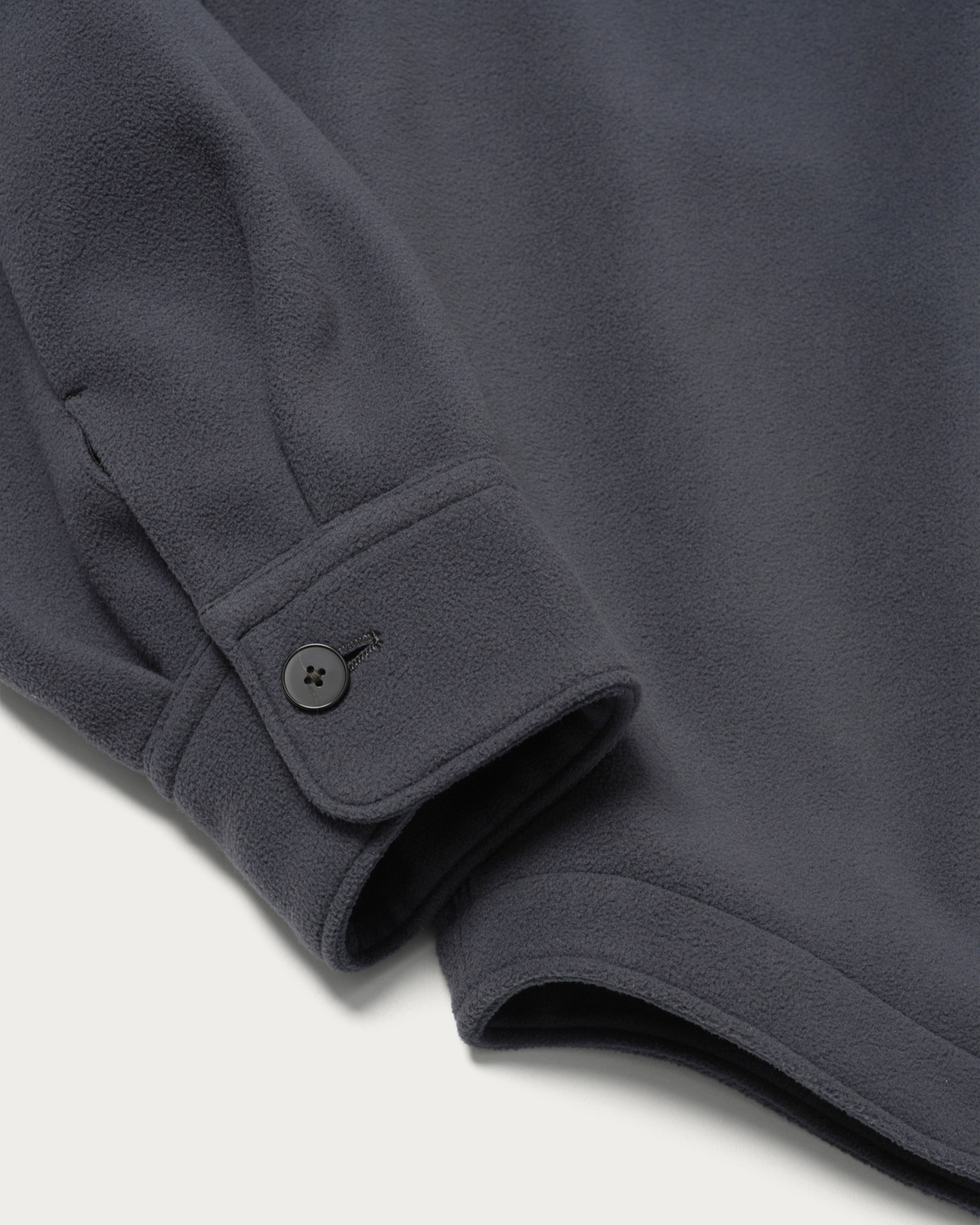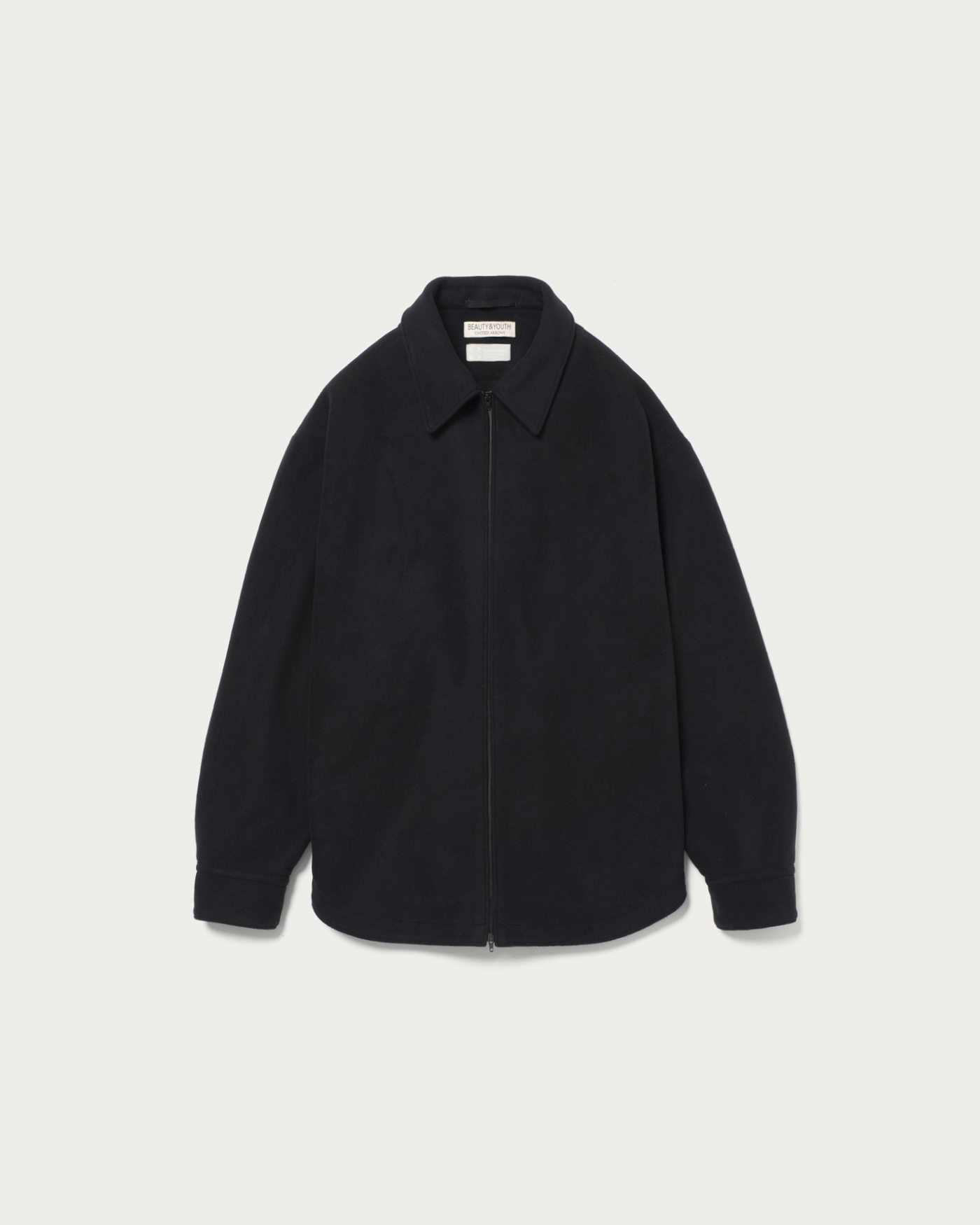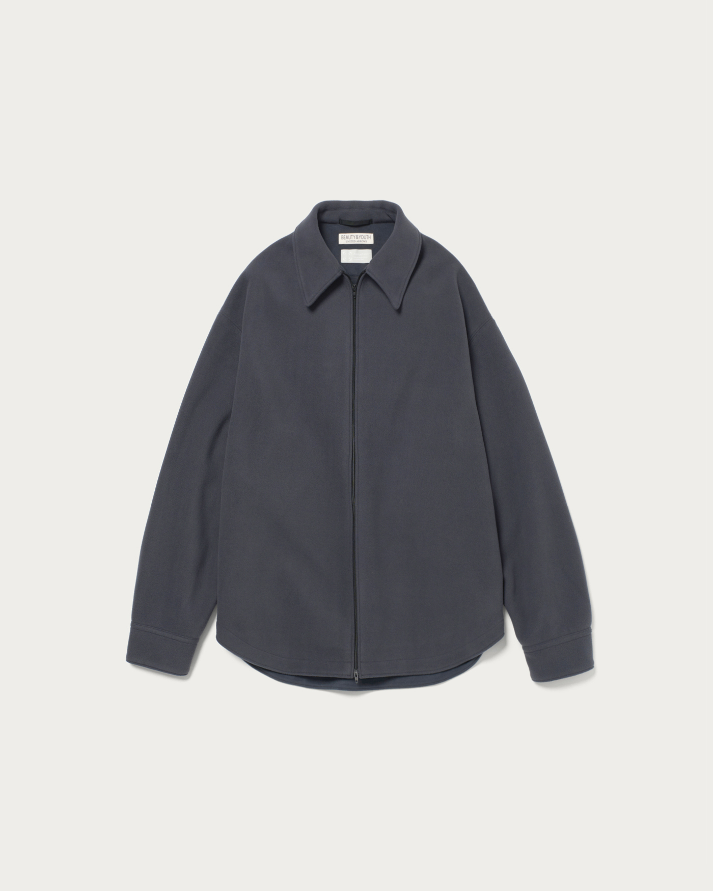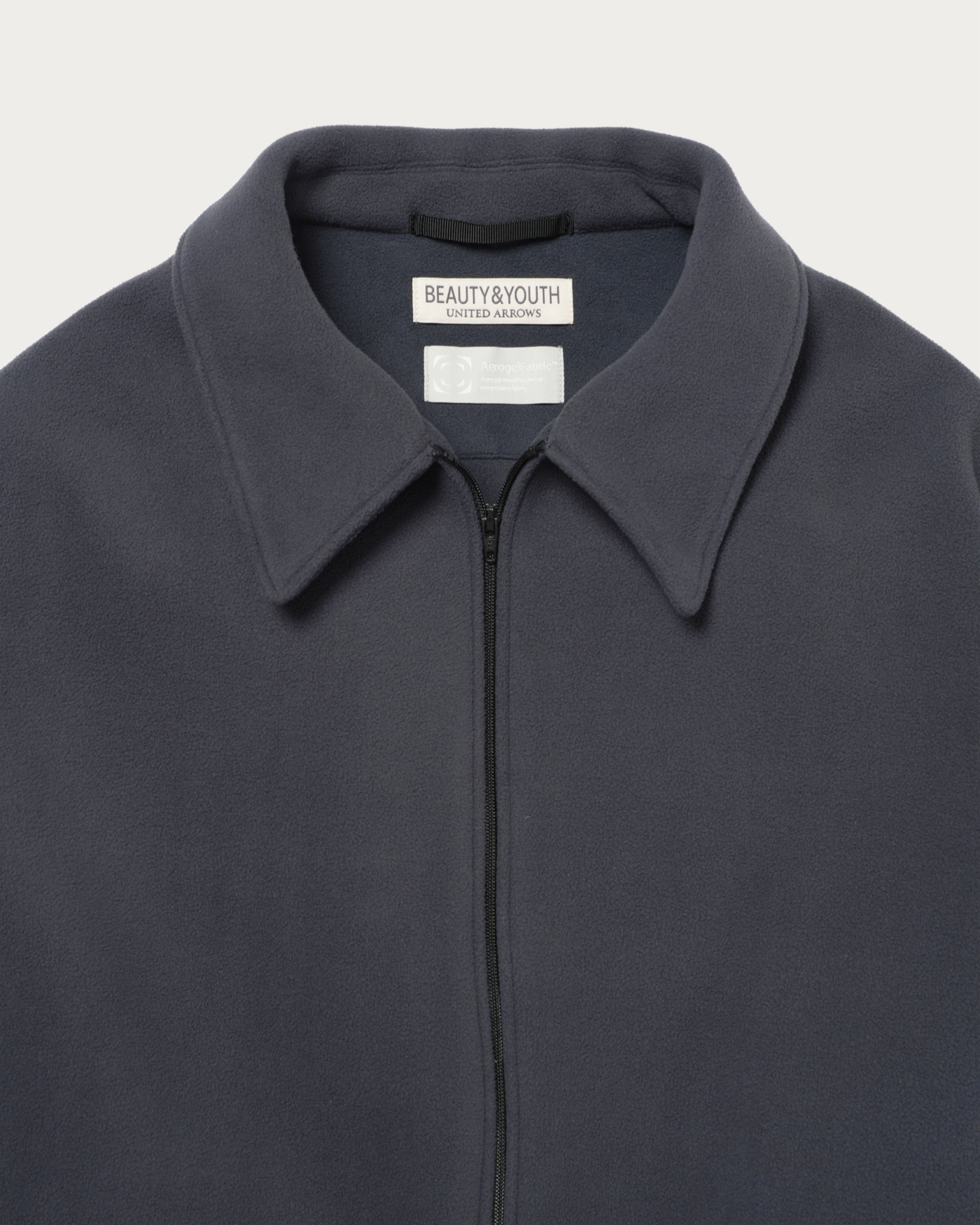 カーディガン型フリースブルゾン。袖裏にはメッシュ生地を採用し、着脱時の滑りを向上させました。さらに保温性を向上させる、エアロゲルを塗したボンディングフリースは、表面がフラットになり、メルトンのような上品な雰囲気に仕上がるのも特徴です。