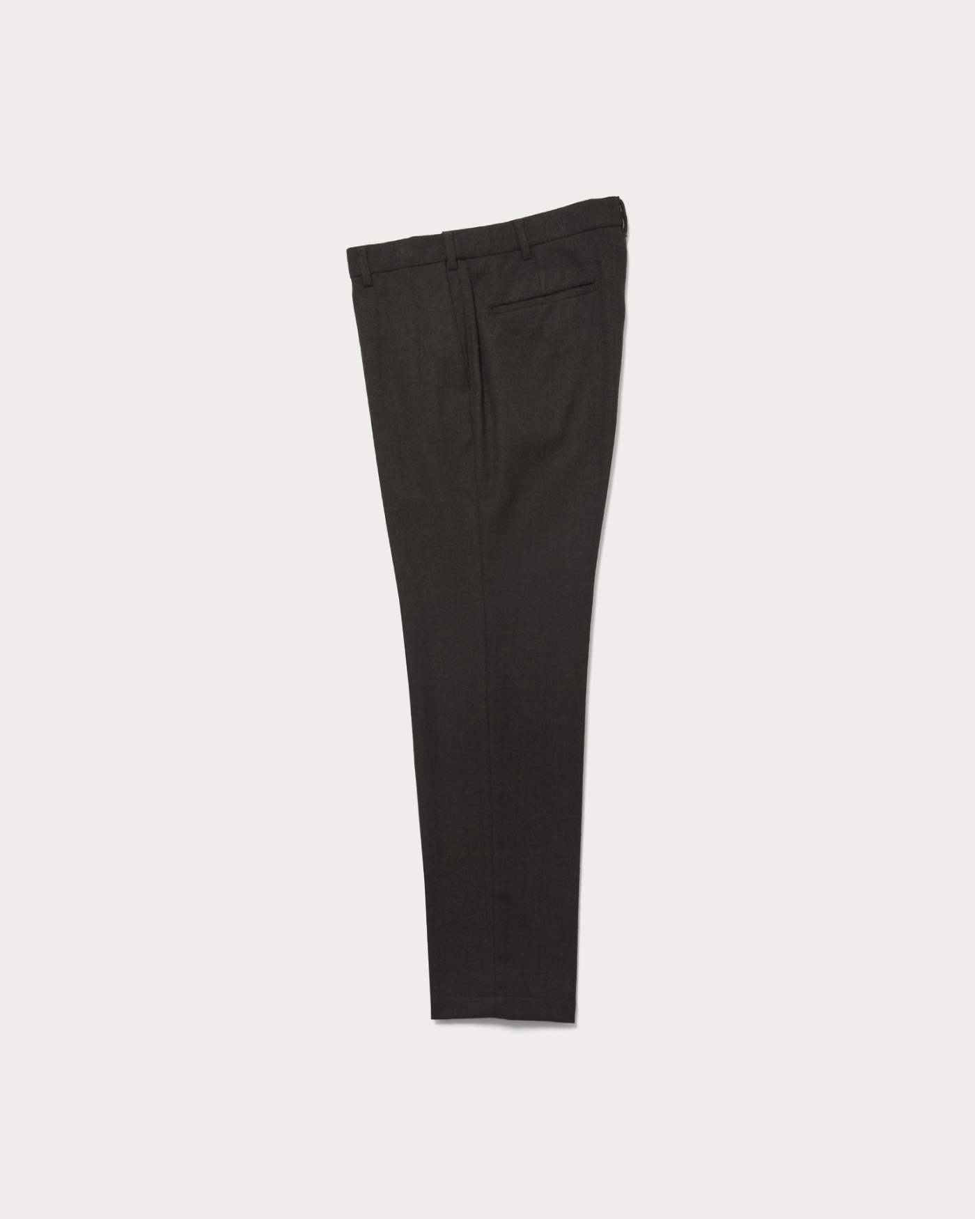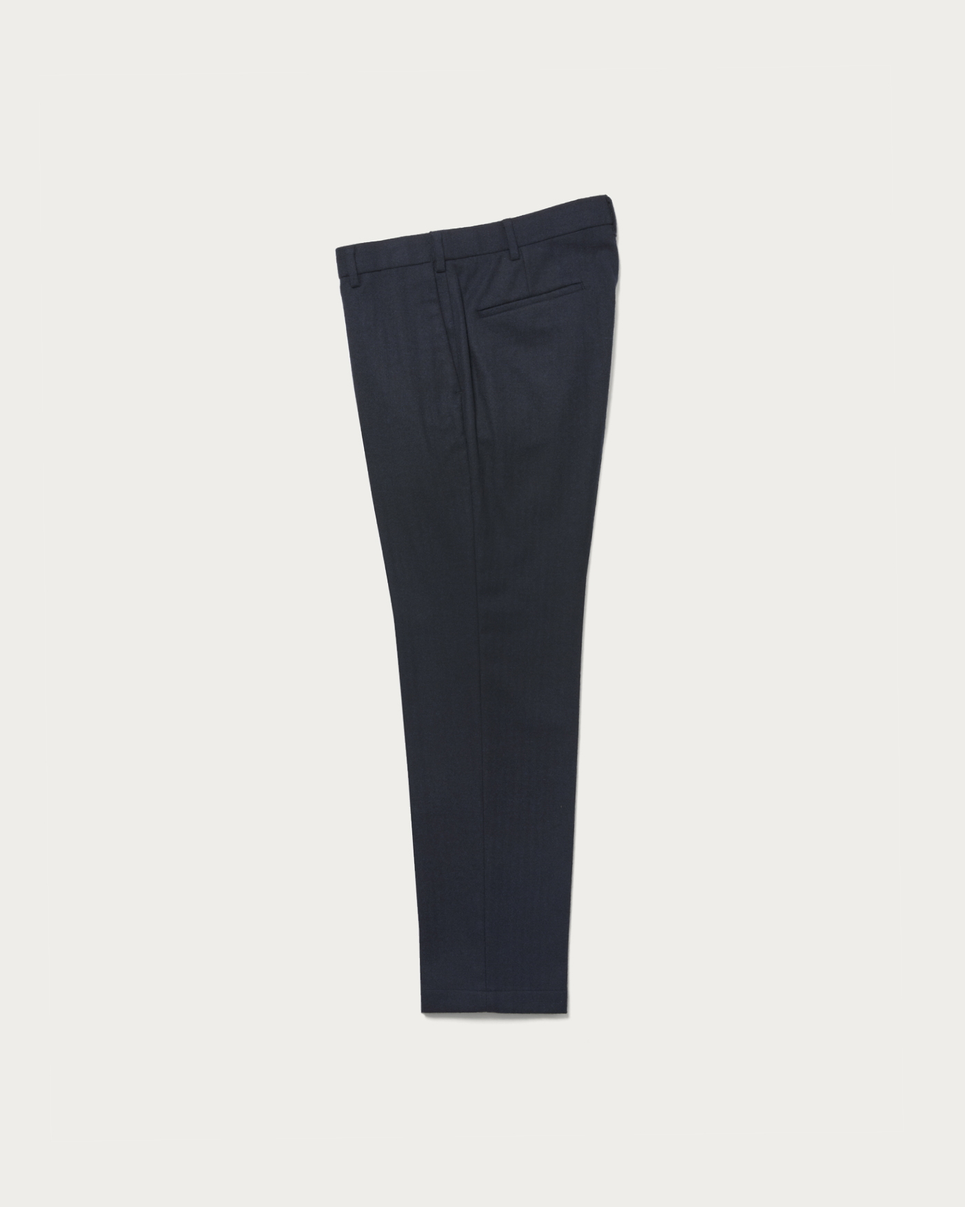 全体的にコンパクトでシャープな印象のノータックスリムスラックス。すっきりとしたシルエットが、スタイリッシュな着こなしを引き立てます。今シーズンからは、ウエスト部分に“ウエストマジック”仕様を採用し、フィット感と快適性をさらに向上。長時間の着用でもストレスなく過ごせる一本に仕上げました。右腰ポケット内にはコインポケットを配備し、さりげない機能性もプラス。
