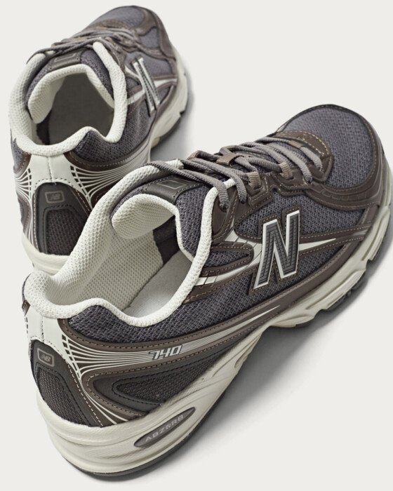 2000年代のフィットネスランニングシューズ「530」のハイブリッドモデル「740」。 今シーズン同モデルをベースに色、素材を別注。ハイテク感のある素材使いでブラウンカラーを随所にあしらい、軽快な雰囲気を演出しました。